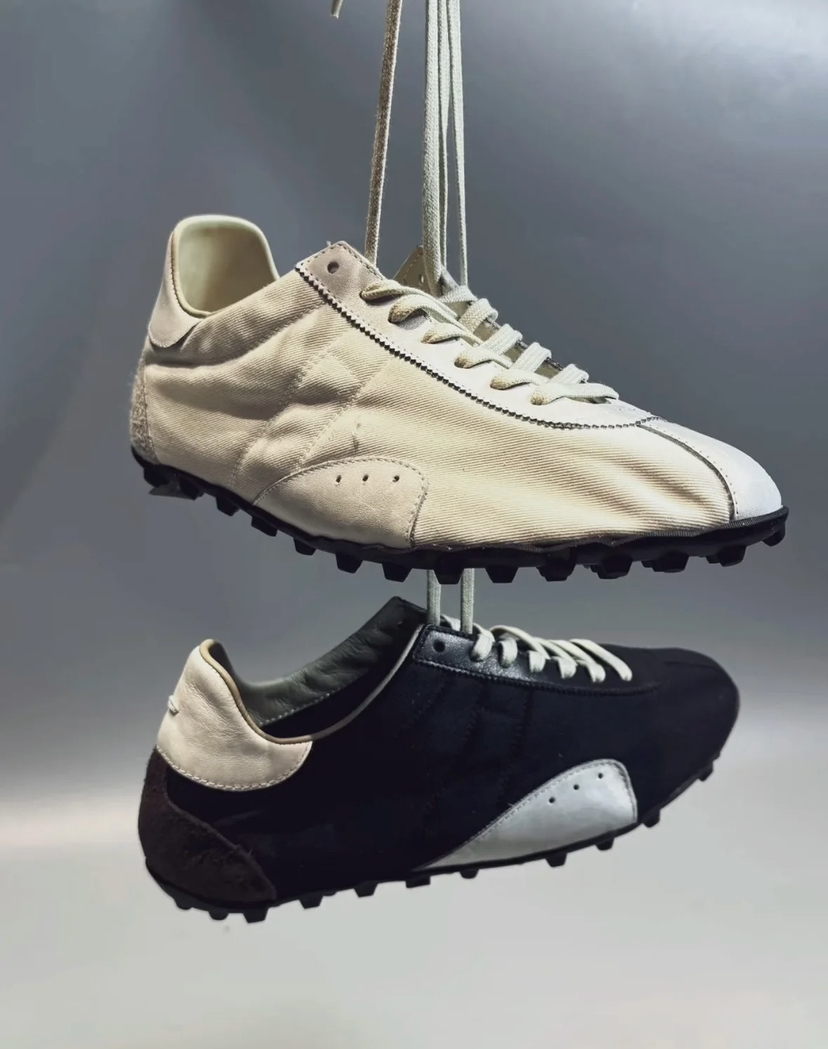 以田径鞋橄榄球鞋为原型的薄底德训鞋,看鞋底这些足球鞋一样的小圆点,你大概就明白了,70年代复古跑鞋的灵魂。