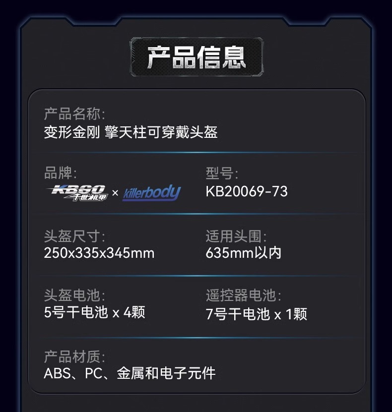Killerbody&千世机甲 变形金刚擎天柱头盔 KB20069-73