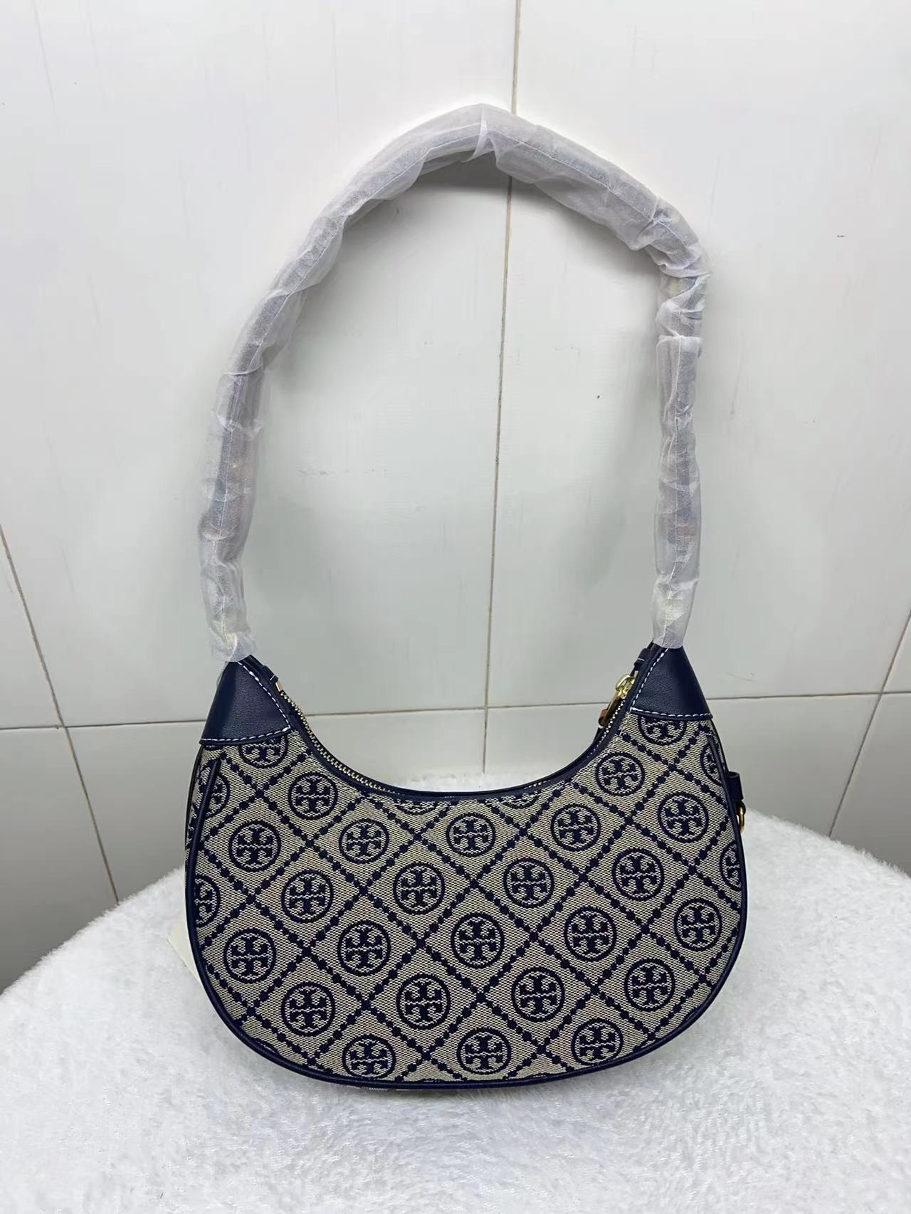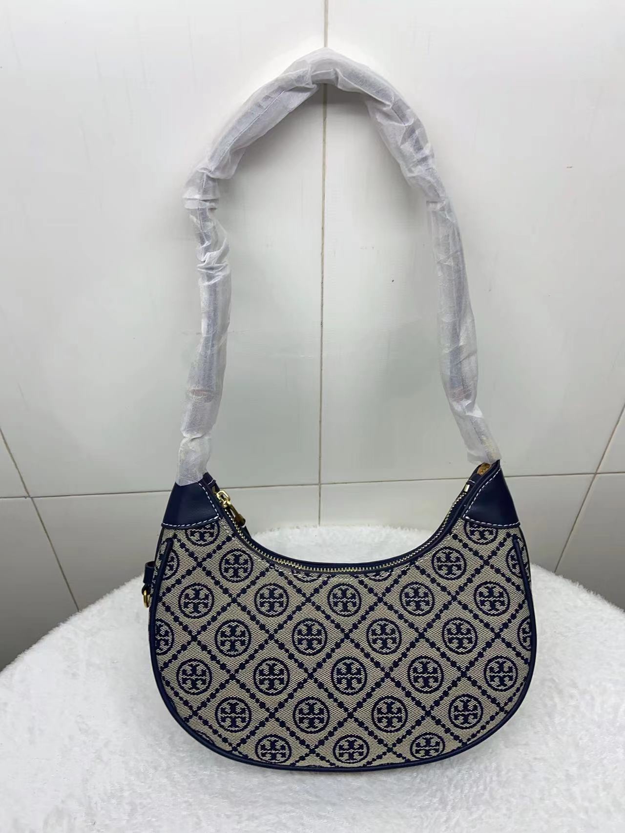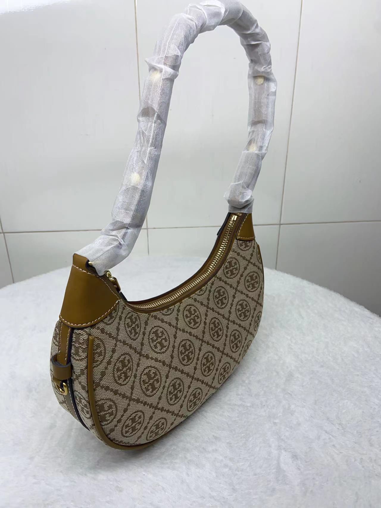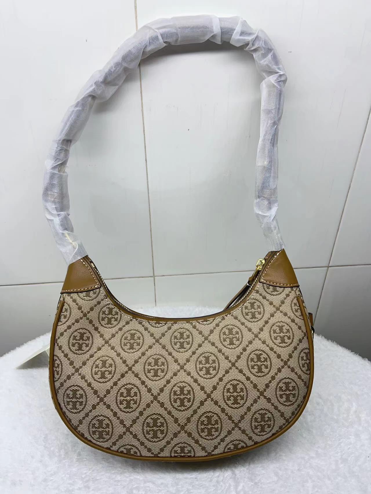 【品牌授权】TORY BURCH 汤丽柏琦 奥莱款 汤丽柏琦提花单肩新月包