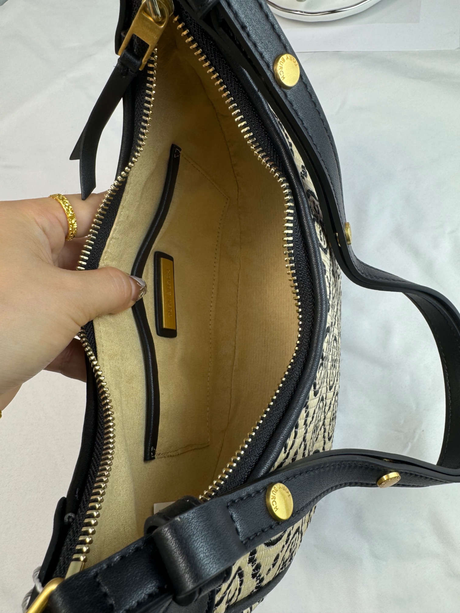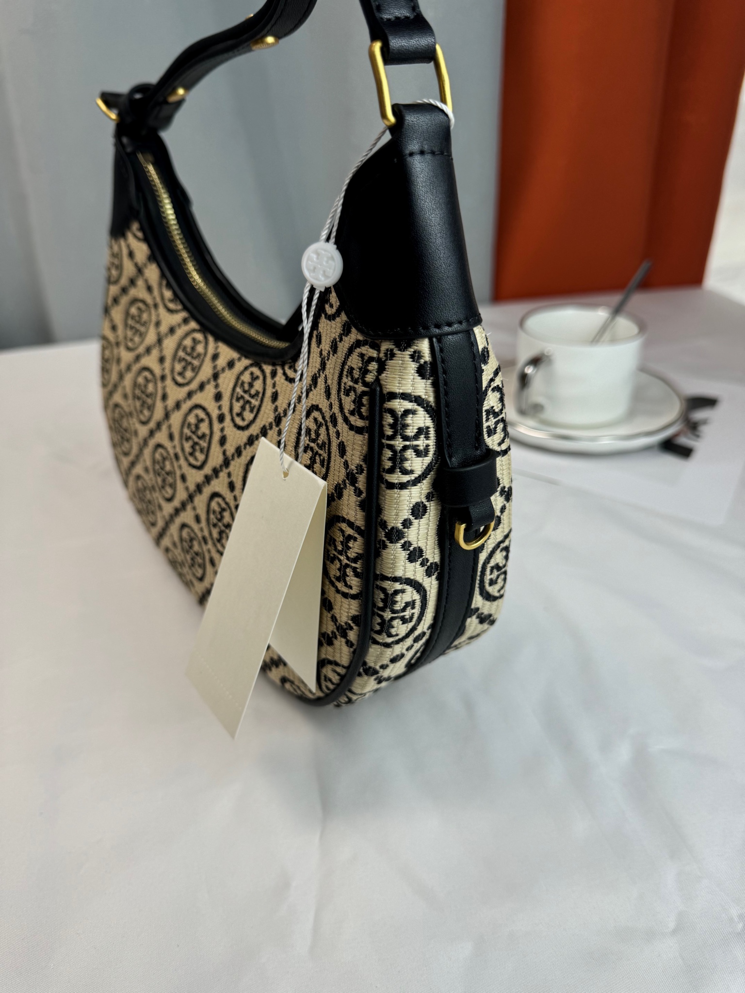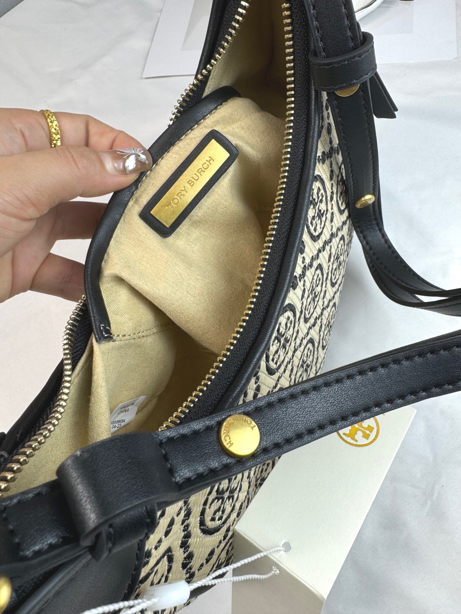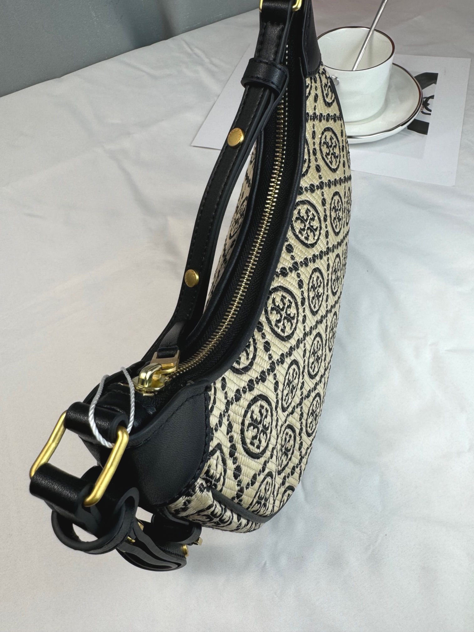 【品牌授权】TORY BURCH 汤丽柏琦 奥莱款 汤丽柏琦提花单肩新月包