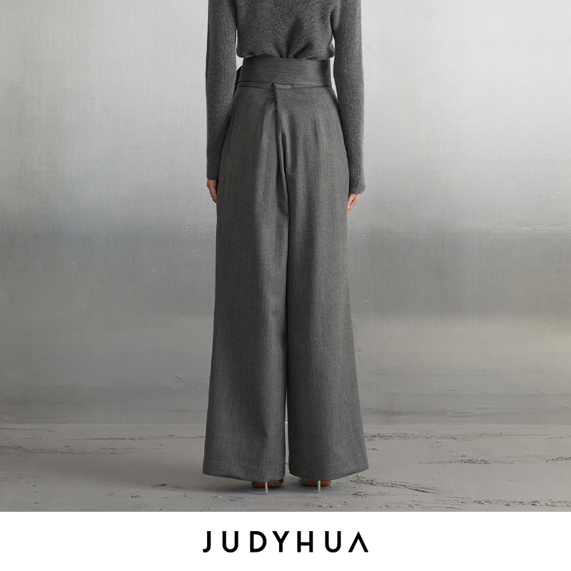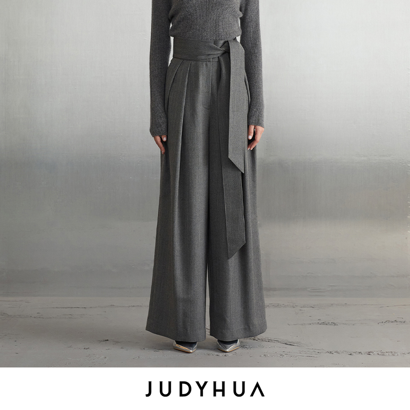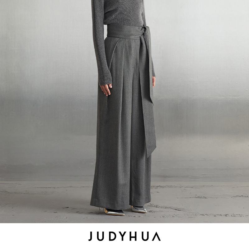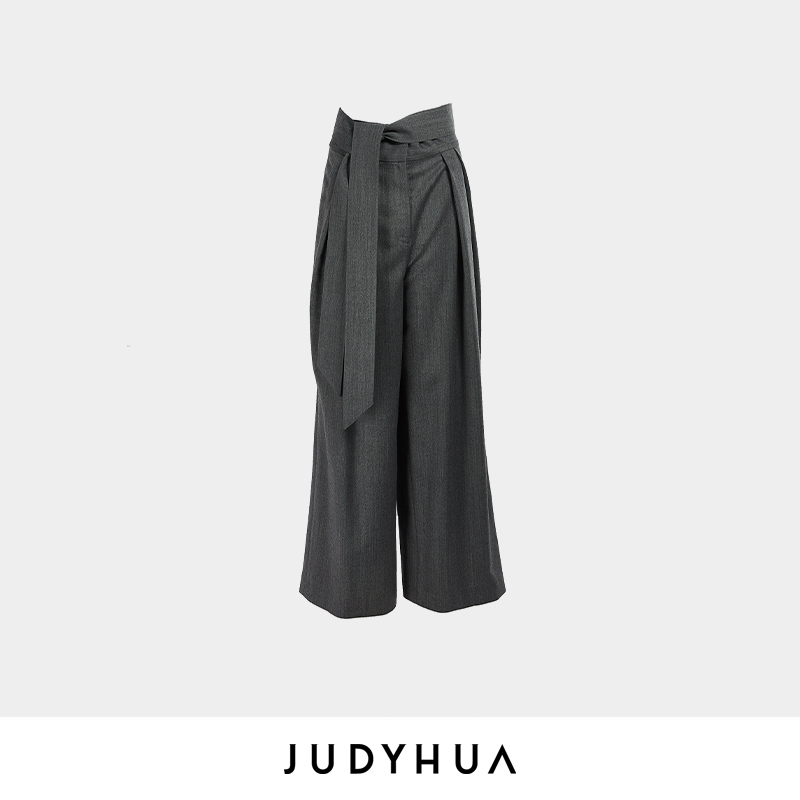JUDYHUA 系带皱褶设计款直筒裤