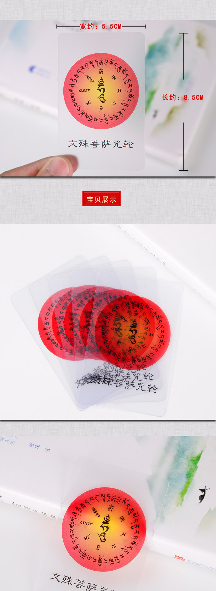 护身辟邪佛卡PVC佩戴文殊菩萨佛卡护身卡透明磨砂单面小唐卡片