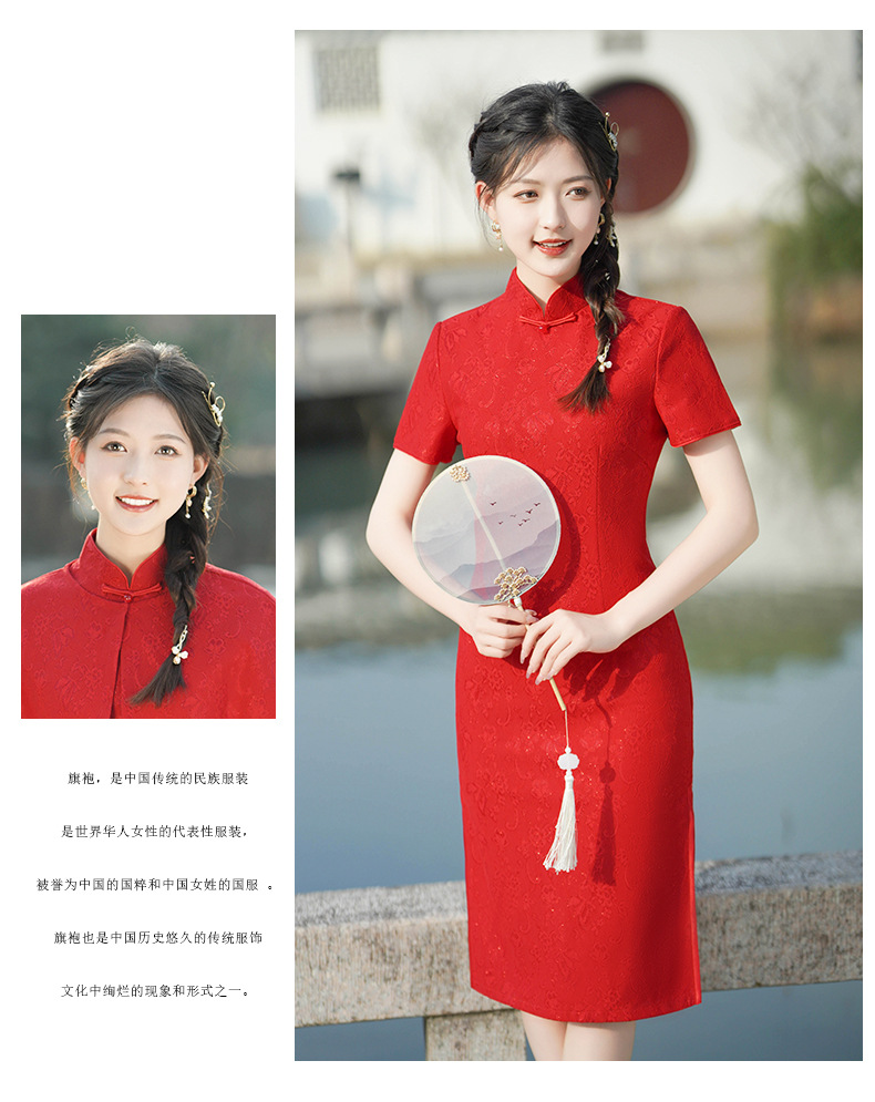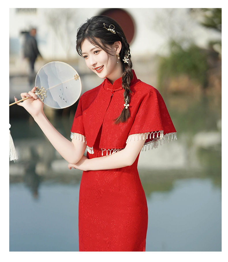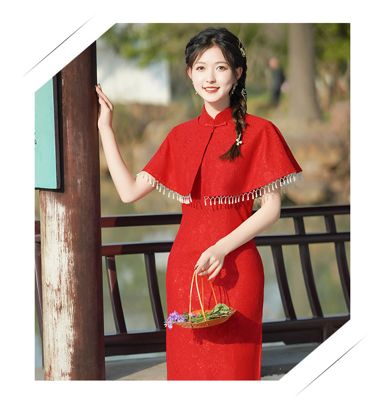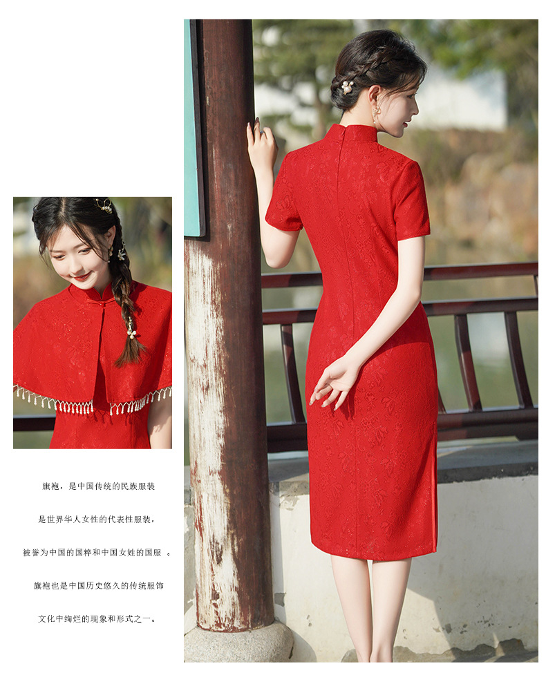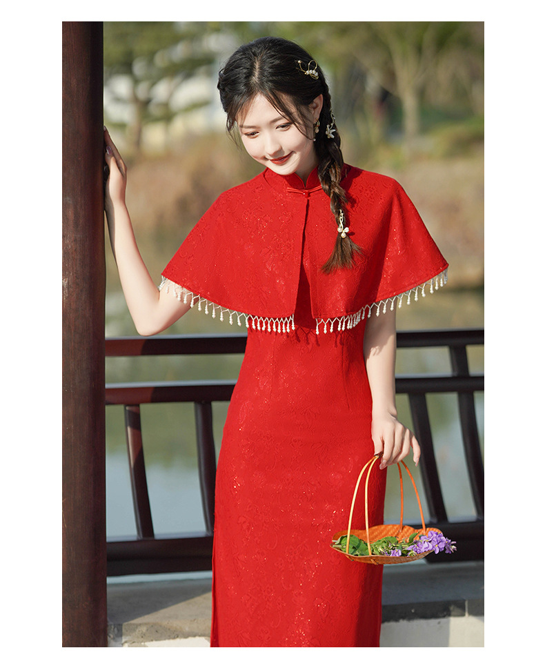 复古修身,红色复合蕾丝中长款新款改良年轻款中国风日常旗袍裙MLS-6655