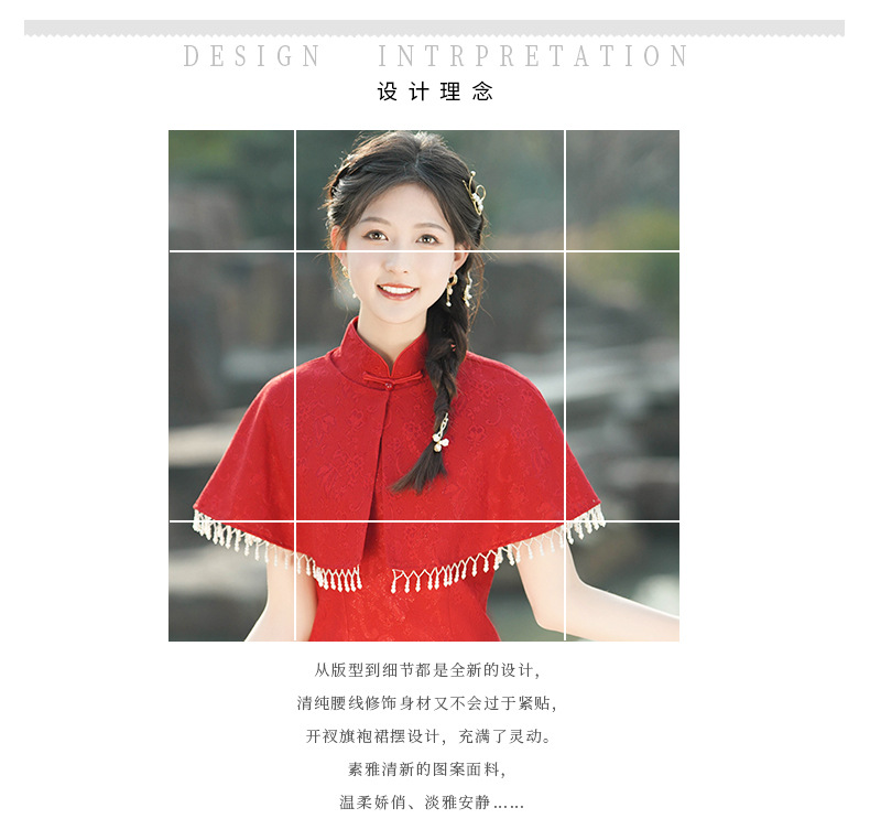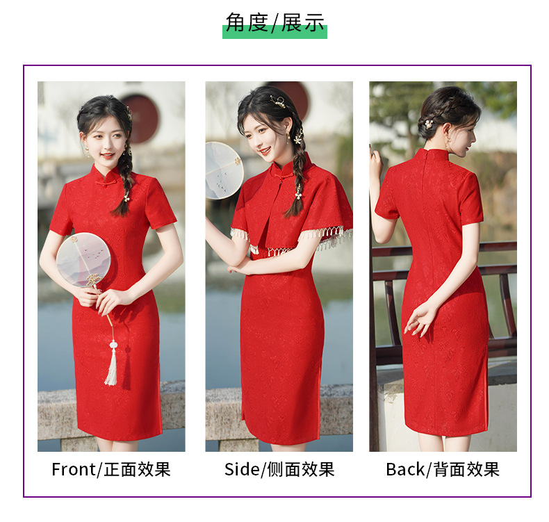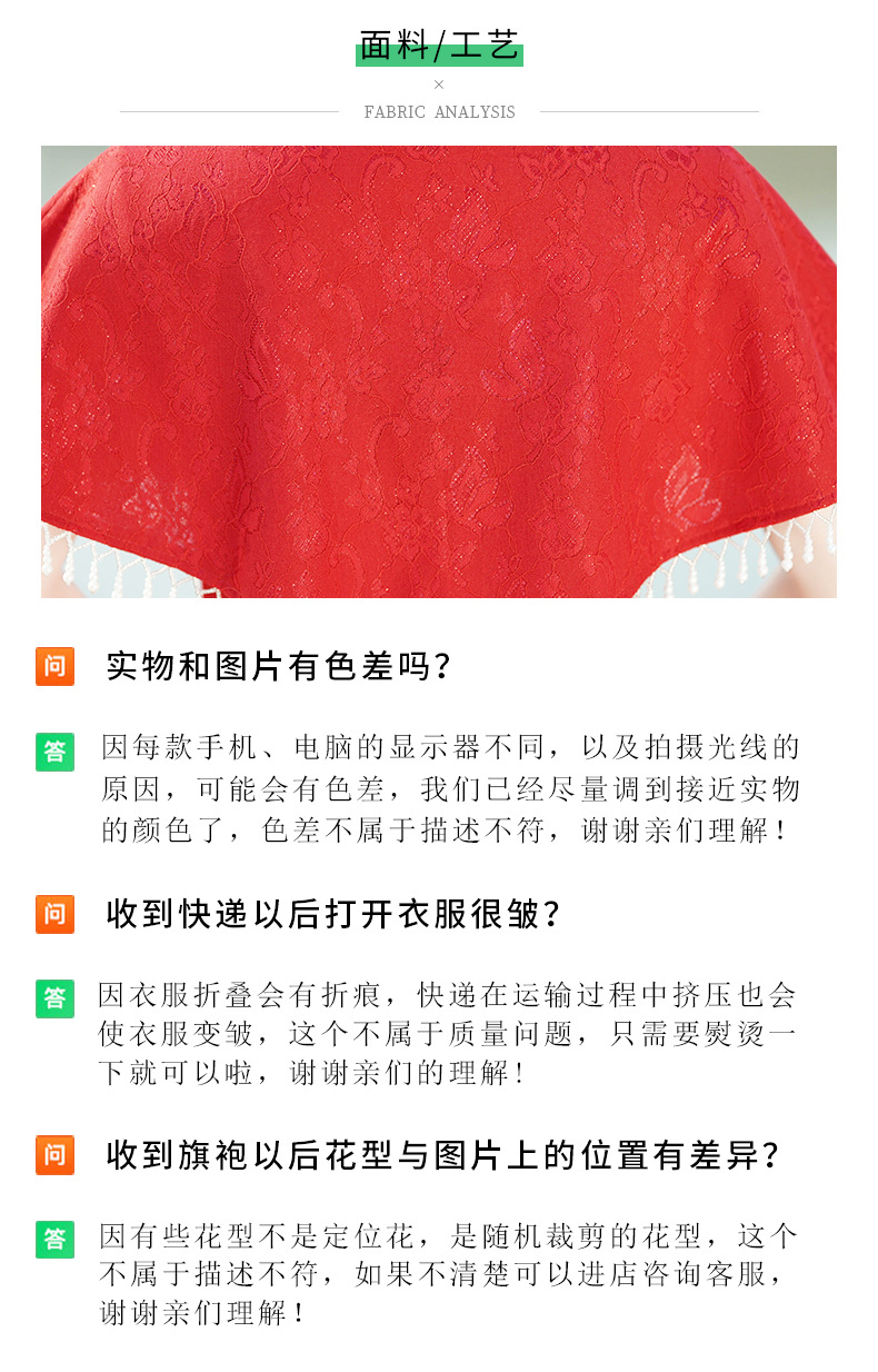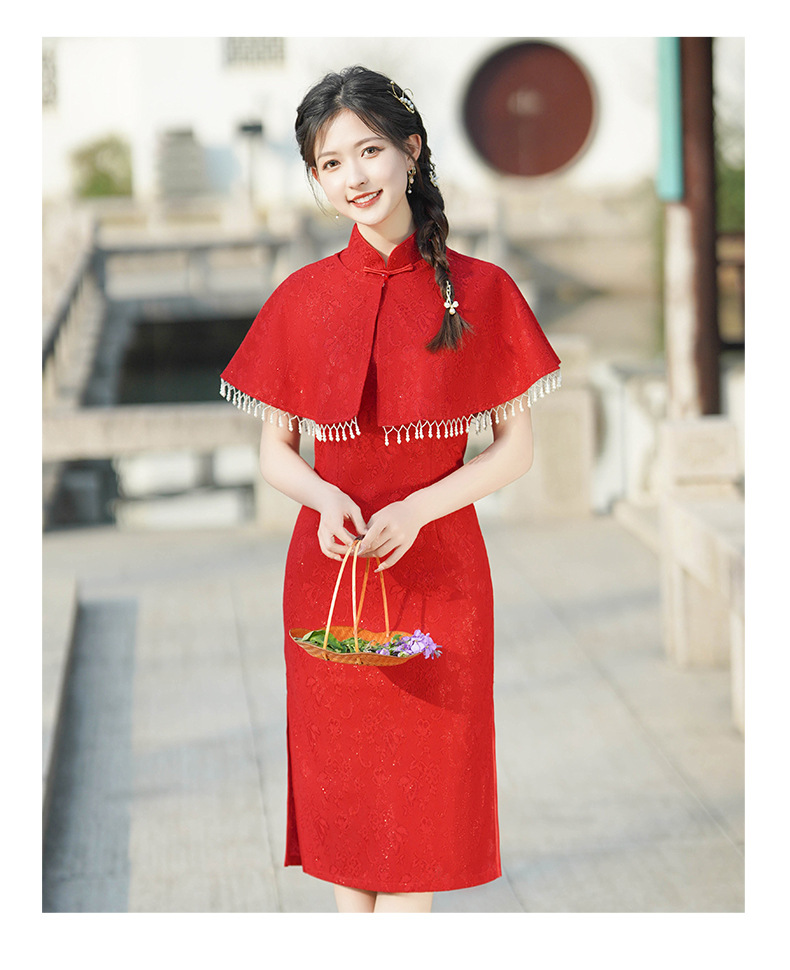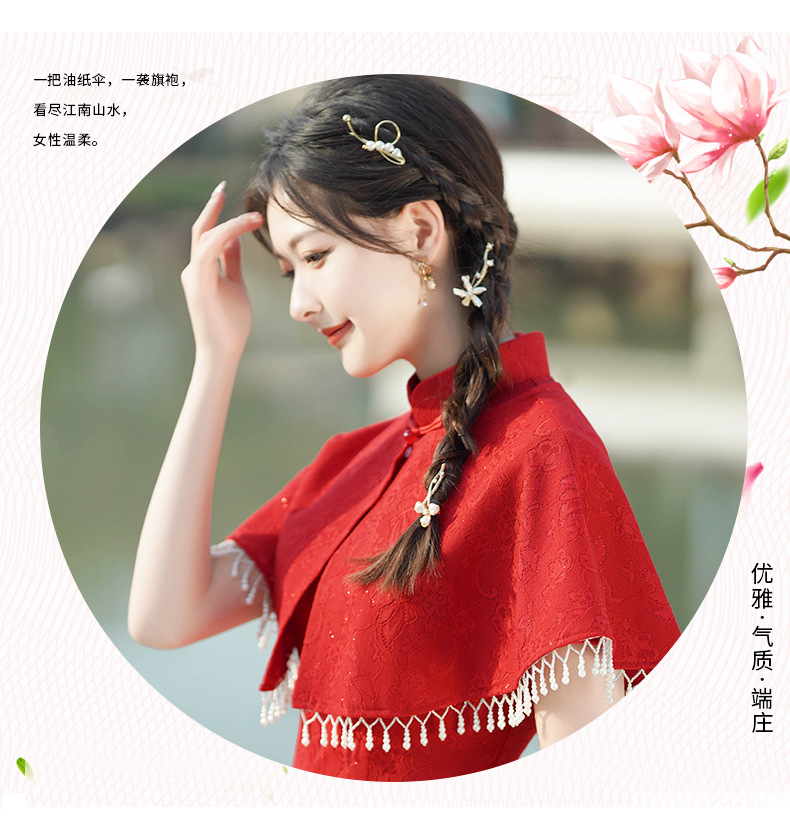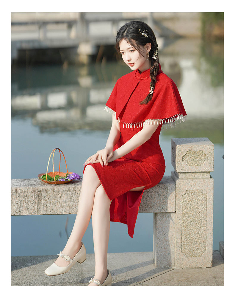 复古修身,红色复合蕾丝中长款新款改良年轻款中国风日常旗袍裙MLS-6655