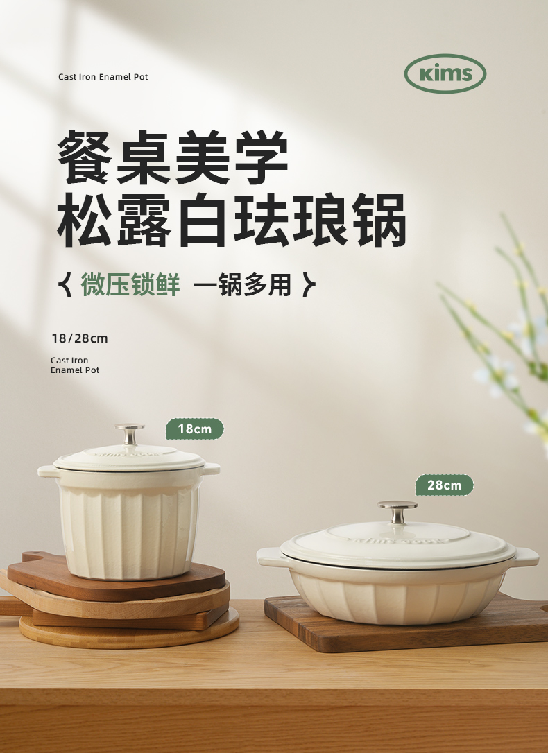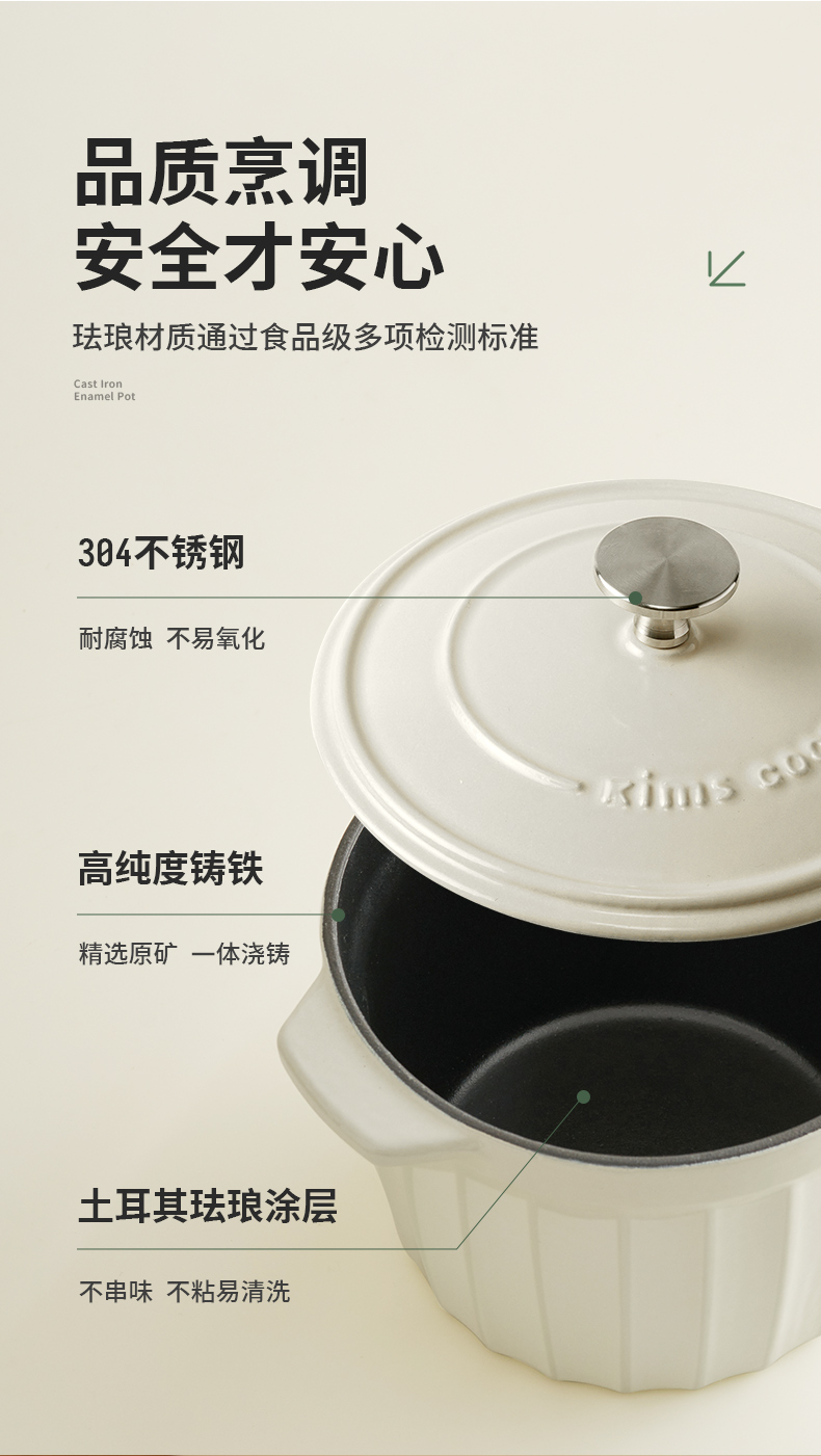 珐琅锅 铸铁煲汤锅焖锅炖锅砂锅海鲜锅 KIMS COOK