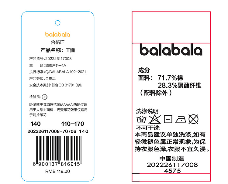 【商场同款】巴拉巴拉童装女童短袖t恤儿童2026新款夏装凉感速干