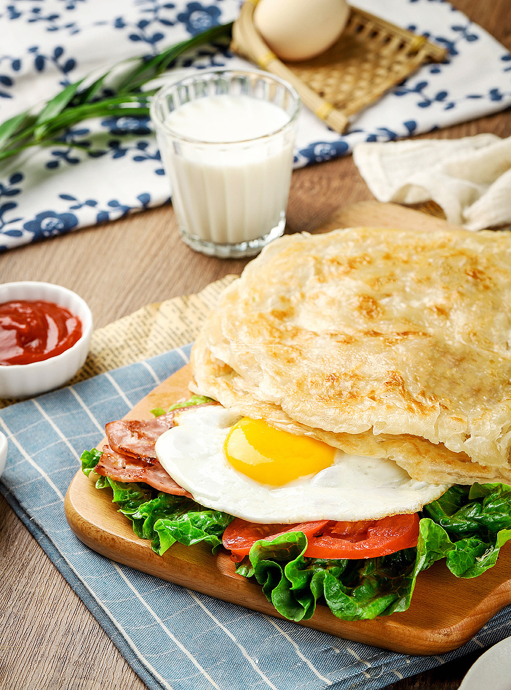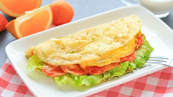 3. 其外层金黄酥脆,内层柔软白嫩。加入喜欢的配菜,3分钟尽享美食~