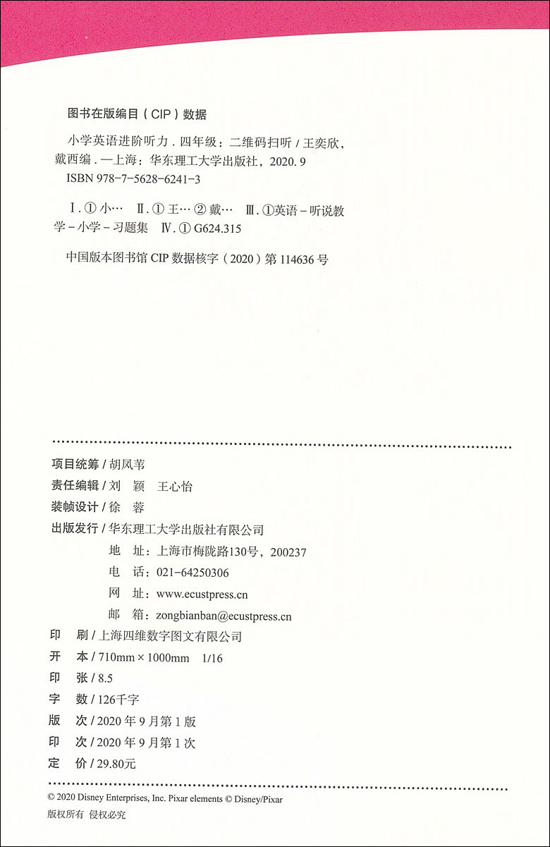 迪士尼小学英语进阶听力四年级/4年级 图解单词句型题型丰富激发学习兴趣 提高英语听力水平 提升语言运用能力 华东理工大学出版社