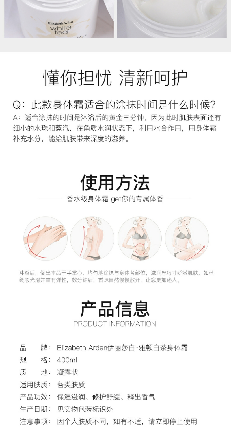 【YZ】伊丽莎白雅顿白茶身体乳霜 400ml