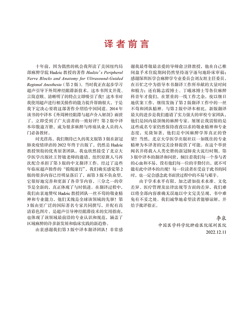 新版 外周神经阻滞与超声介入解剖 第3版李泉超声引导下神经阻滞麻醉临床操作视频3D解剖图像超声图解2二版 北京大学医学出版社