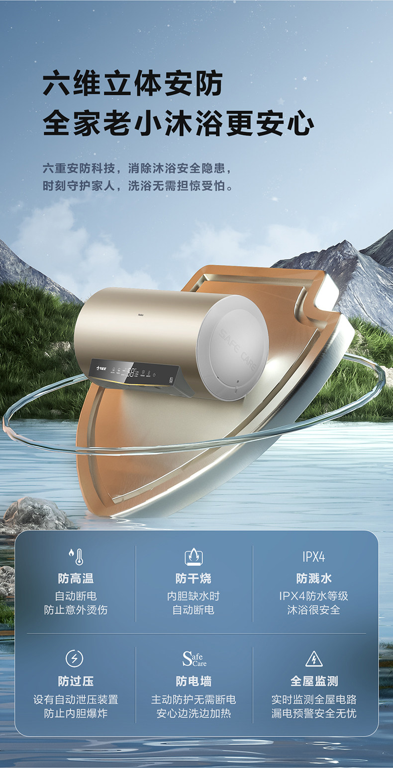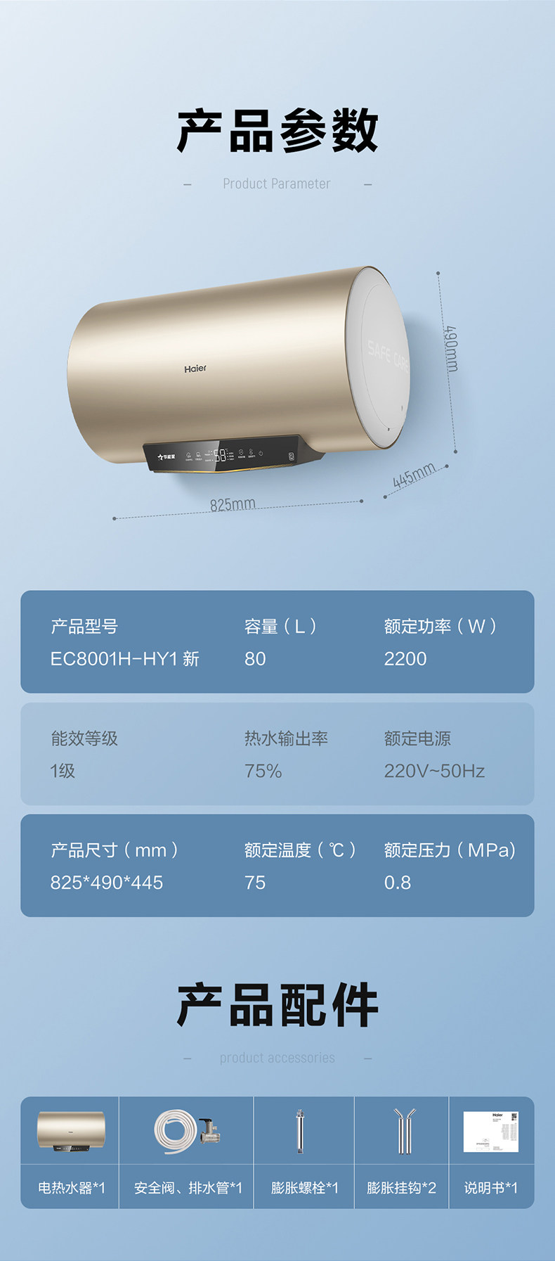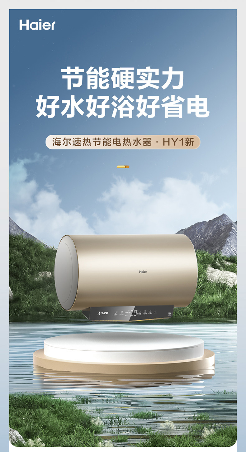 海尔(Haier)EC8001H-HY1新-家用储水式电热水器智能恒温速热大水量变频节能省电 80升