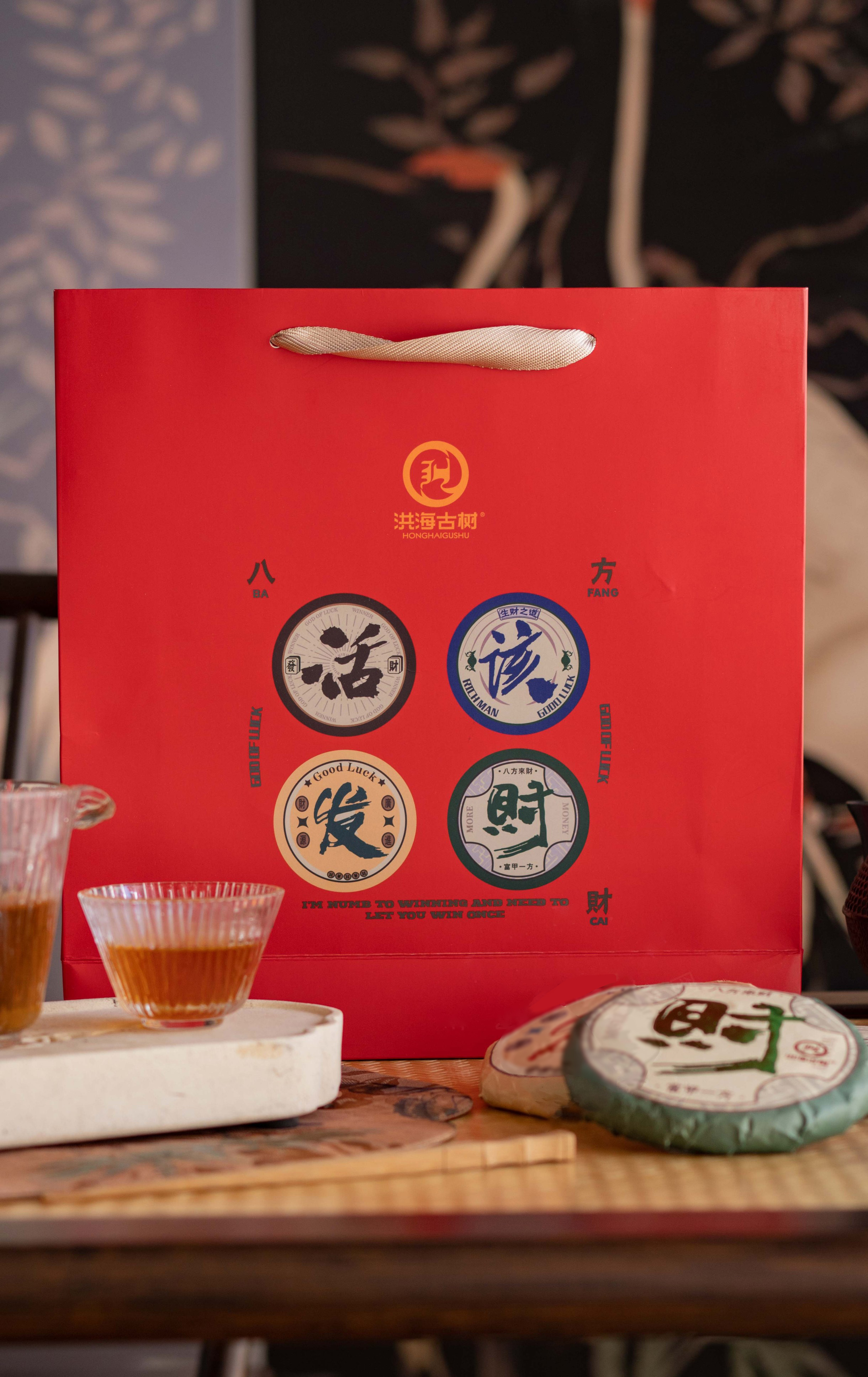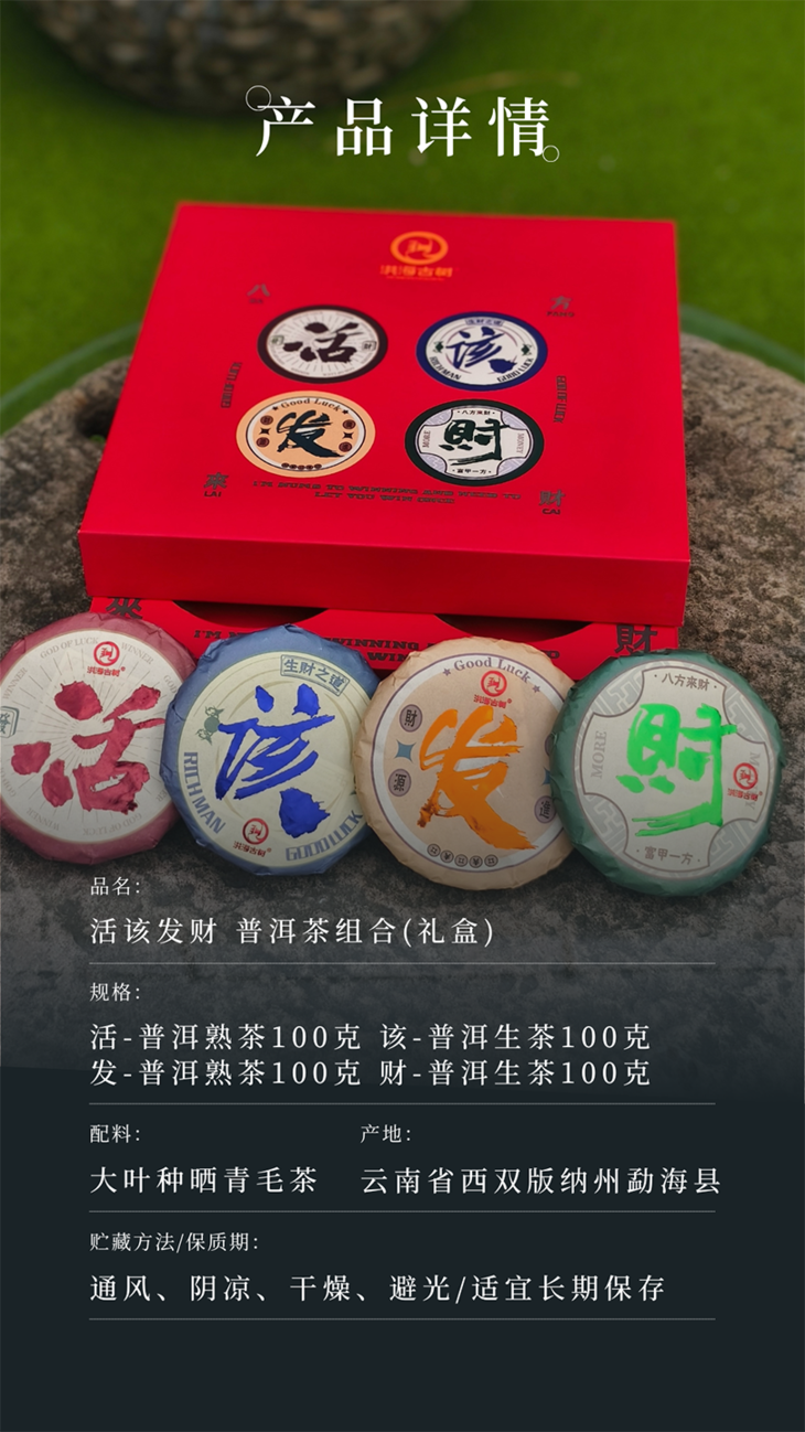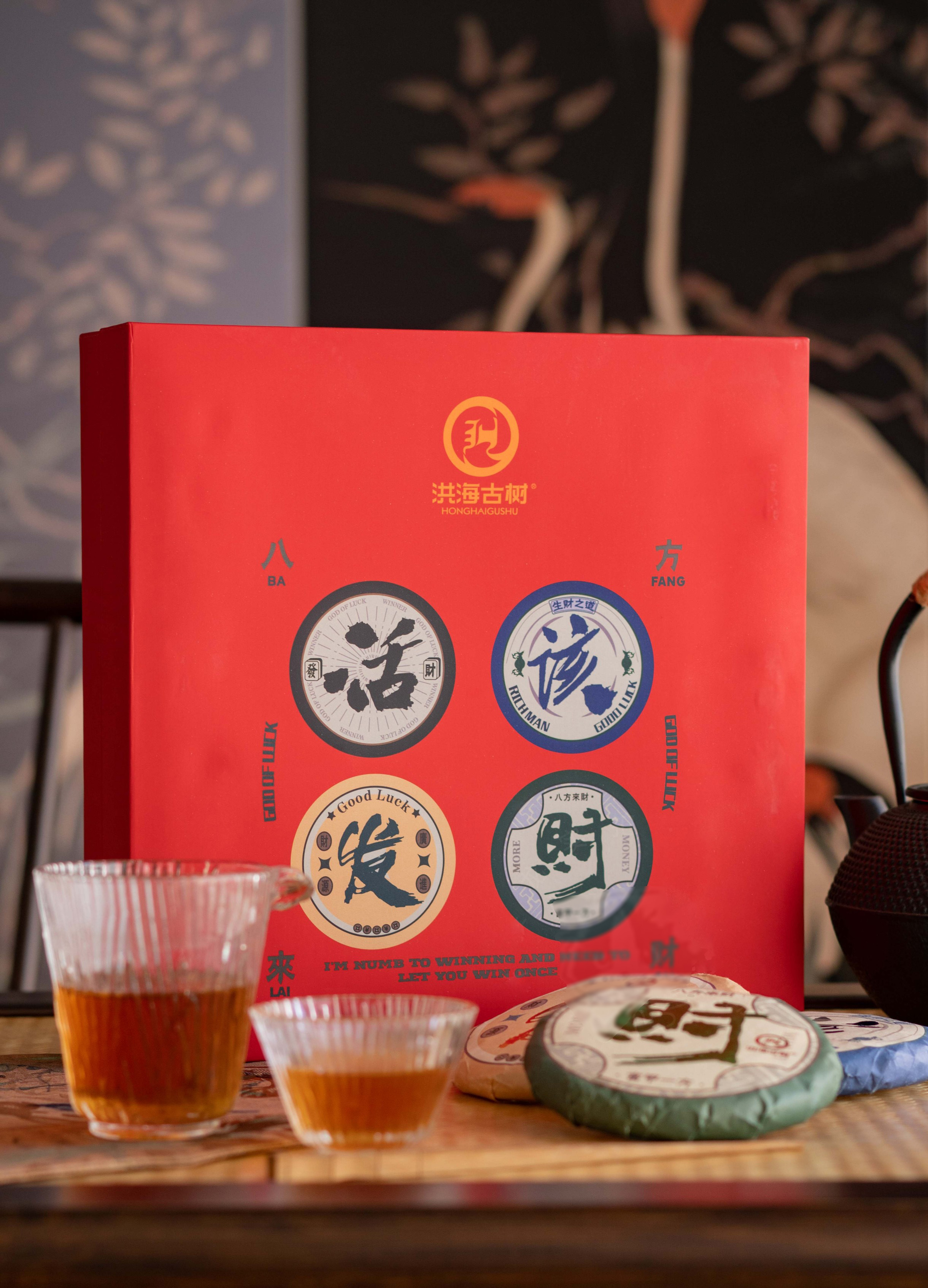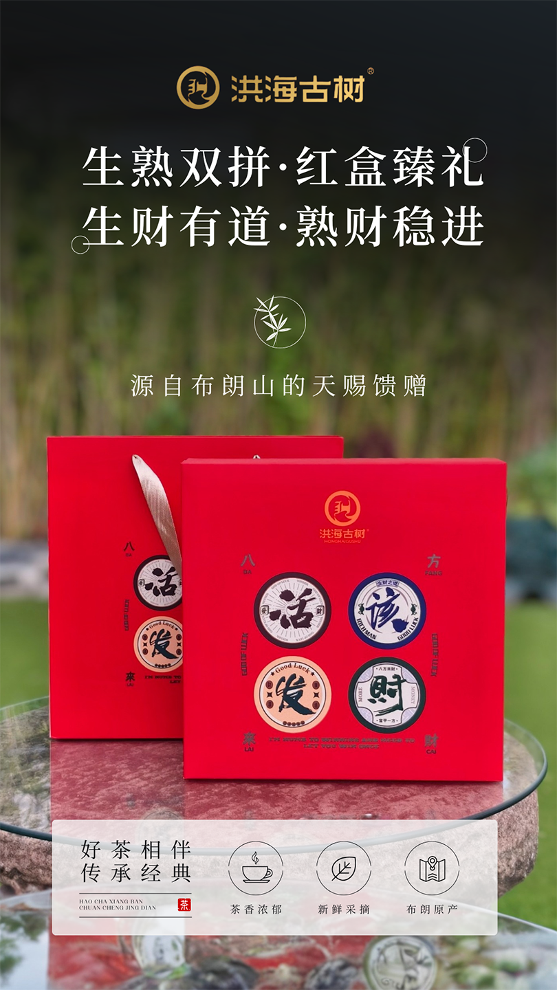 疯抢中!!【活“gai”发财·洪海古树普洱礼盒】100g*2饼普洱熟茶+100g*2饼普洱生茶 好喝好寓意 茶香饱满 节日好礼/送手提礼袋