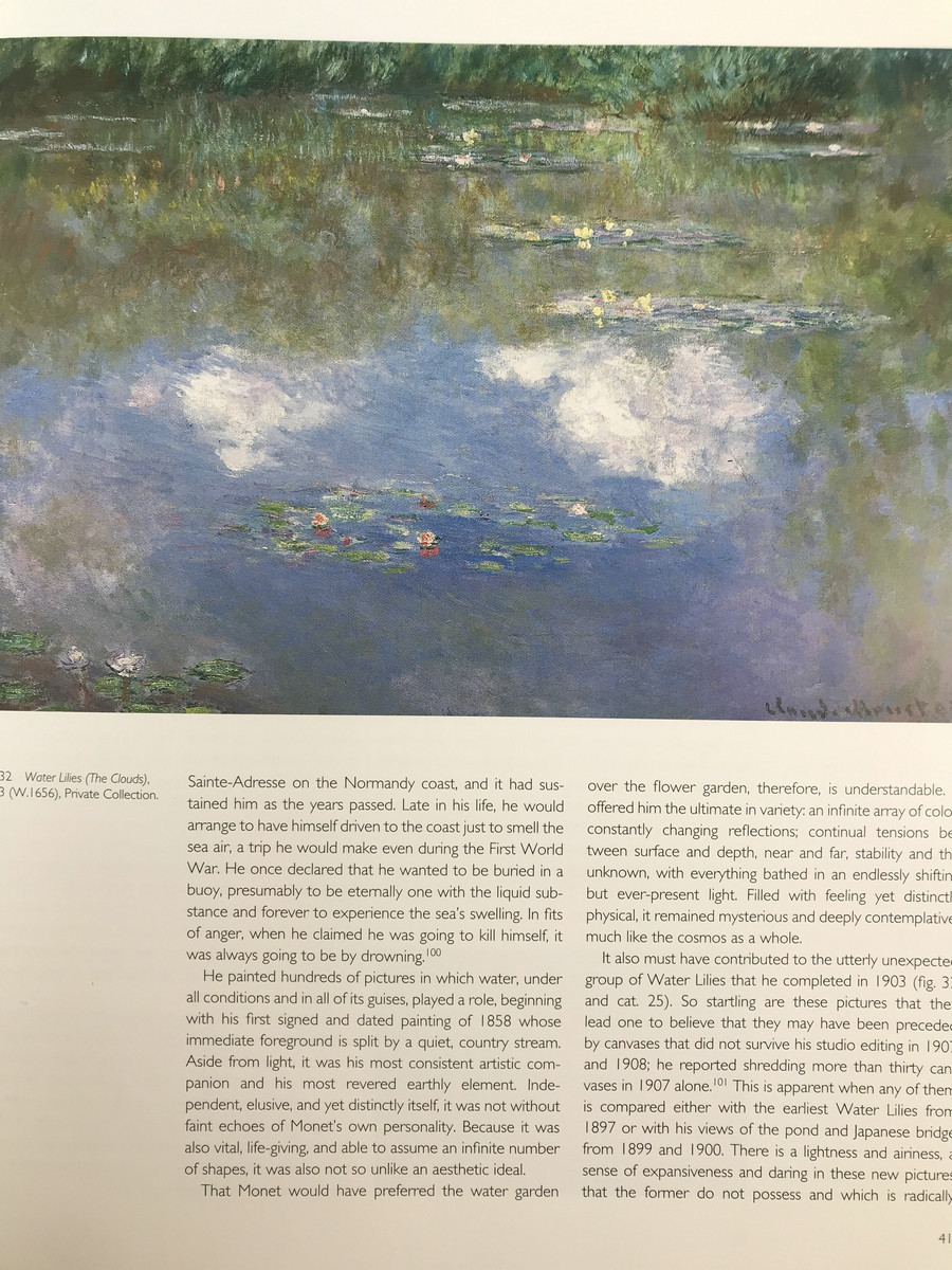 是书诞生于波士顿美术馆和伦敦皇家艺术学院关于莫奈的展览,第一部分四篇由专家撰写的重点评论文章中,当代重要的艺术批评家塔克重新审视了这位仍然很有影响力的经典画家,他没有沿用传统的学界传统,而是用经验、色彩、感觉、折射和多样性来观察和重新定义19世纪的艺术,同时将绘画从透视和空间观察中解放出来。他的作品后来影响了美国抽象表现主义和20世纪中期的色彩领域艺术家。他还展现了引人入胜的历史,巧妙地将莫奈及其后期作品置于他所处时代的政治剧变背景之下。塔克展示了画家的法兰西爱国理想,从埃特尔塔特的巨浪到沙特尔闪闪发光的外墙,再到公开声讨臭名昭著的德雷福斯事件。塔克追溯了莫奈从这一时期开始出现的意象裂缝,他放弃了典型的法国场景,转而专注于自己后院的花园。塔克还巧妙地展现了莫奈在漫长的第一次世界大战期间的绝望,尽管年事已高,但他仍时常做出的英雄般的努力。
