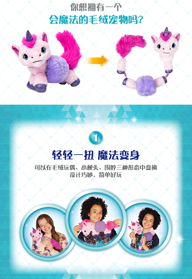 斯平马斯特Spin Master 翠斯蒂魔法毛绒围巾独角兽小猫百变造型宠物女孩创意玩具玩偶