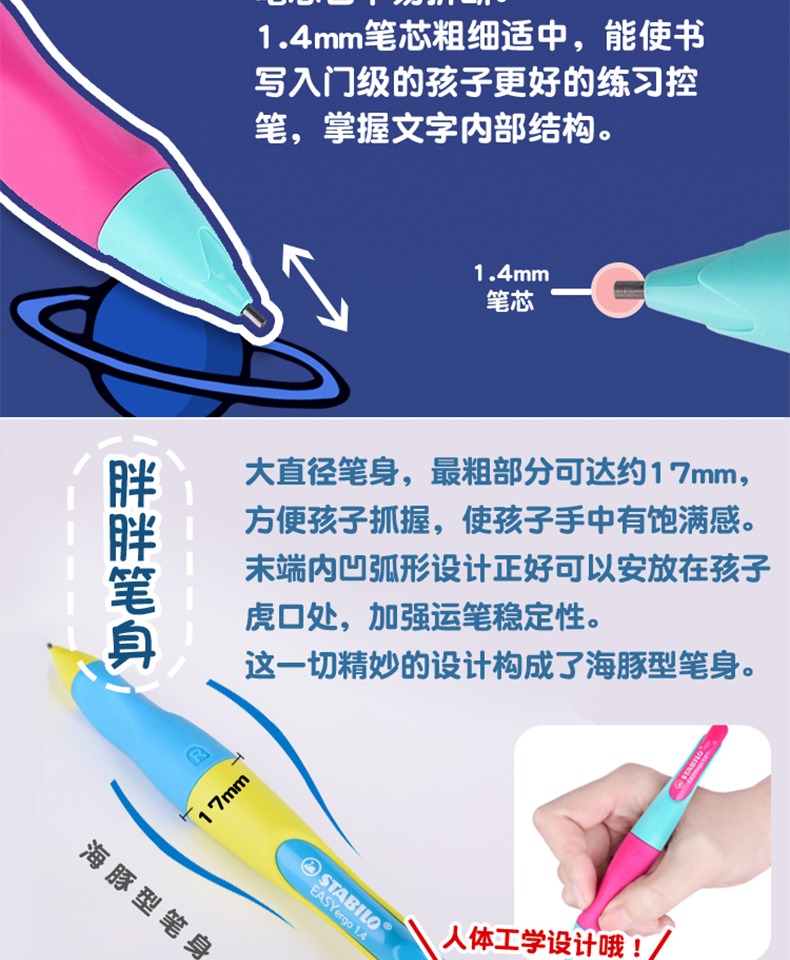 1.4胖胖铅 思笔乐1.4胖胖铅练字握笔自动铅笔mg