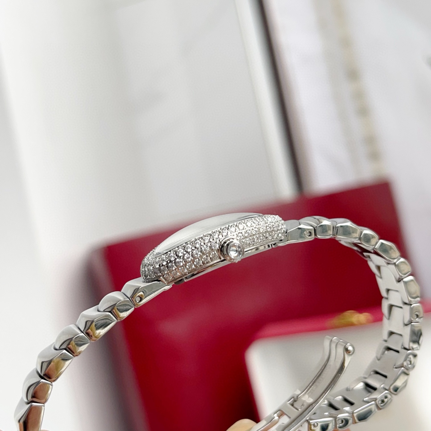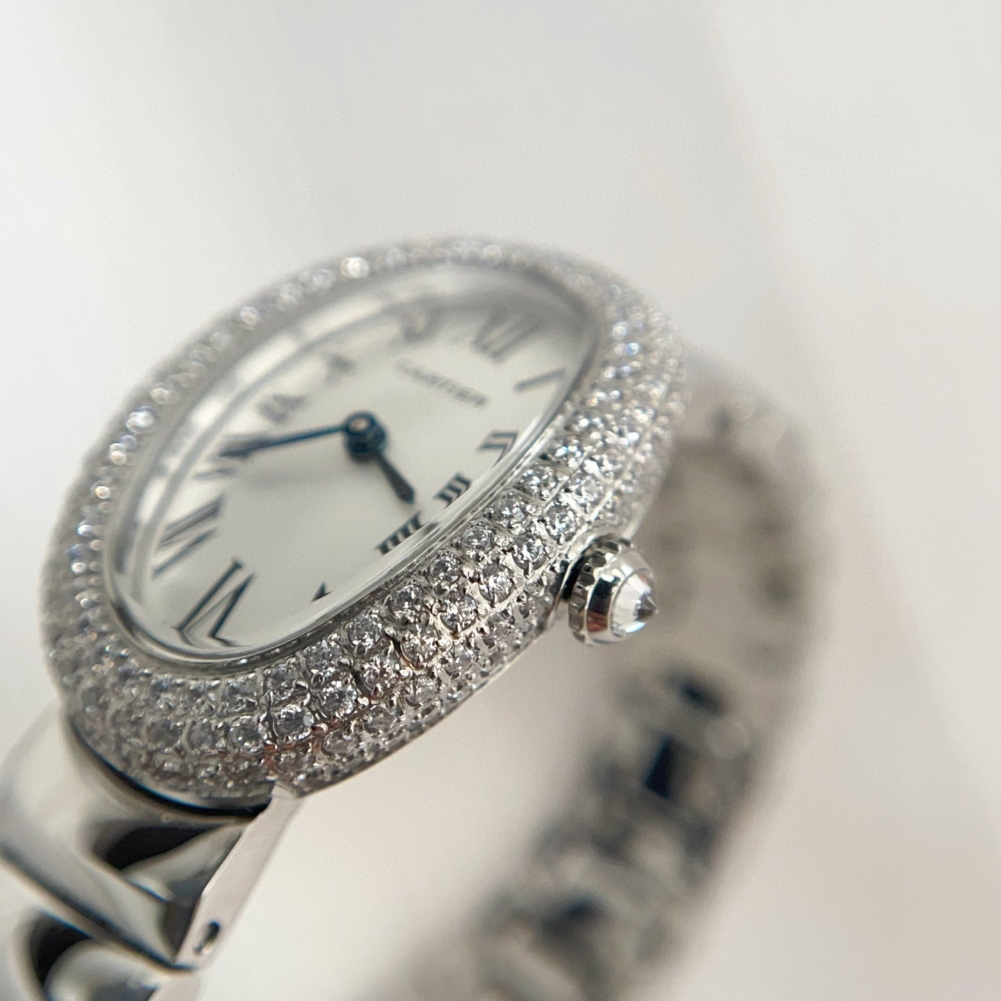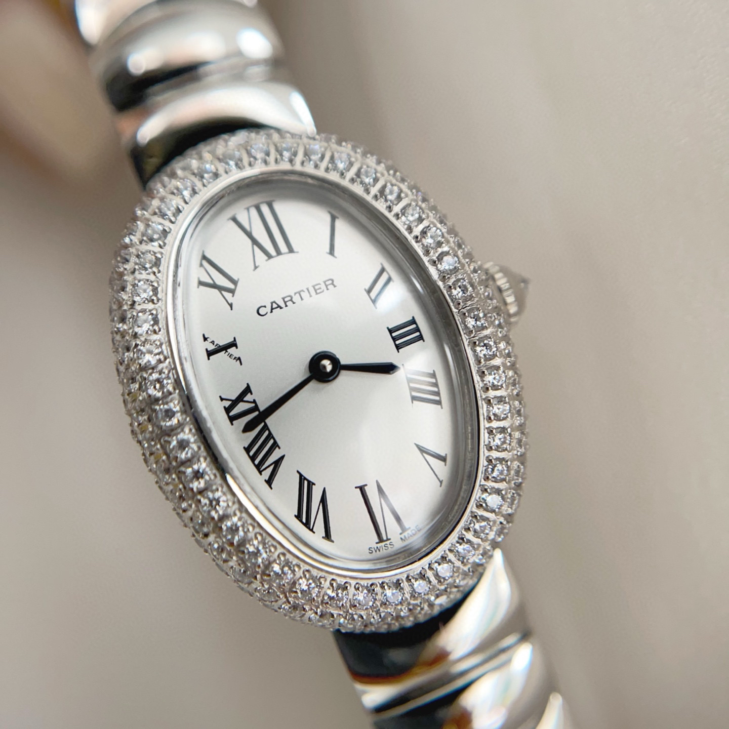 卡地亚浴缸Baignoire1920系列,进口瑞士石英机芯,316L精钢表壳表链,淬火钢蓝指针,标志性罗马表盘,弧形水晶镜面,月牙形表链环环相扣,表壳尺寸: