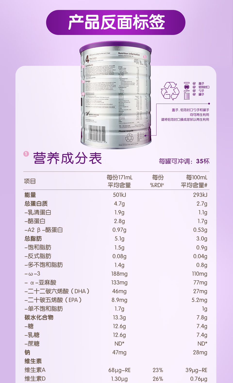 【跨境商品 不可用储值金】新西兰A2白金版奶粉3段900g