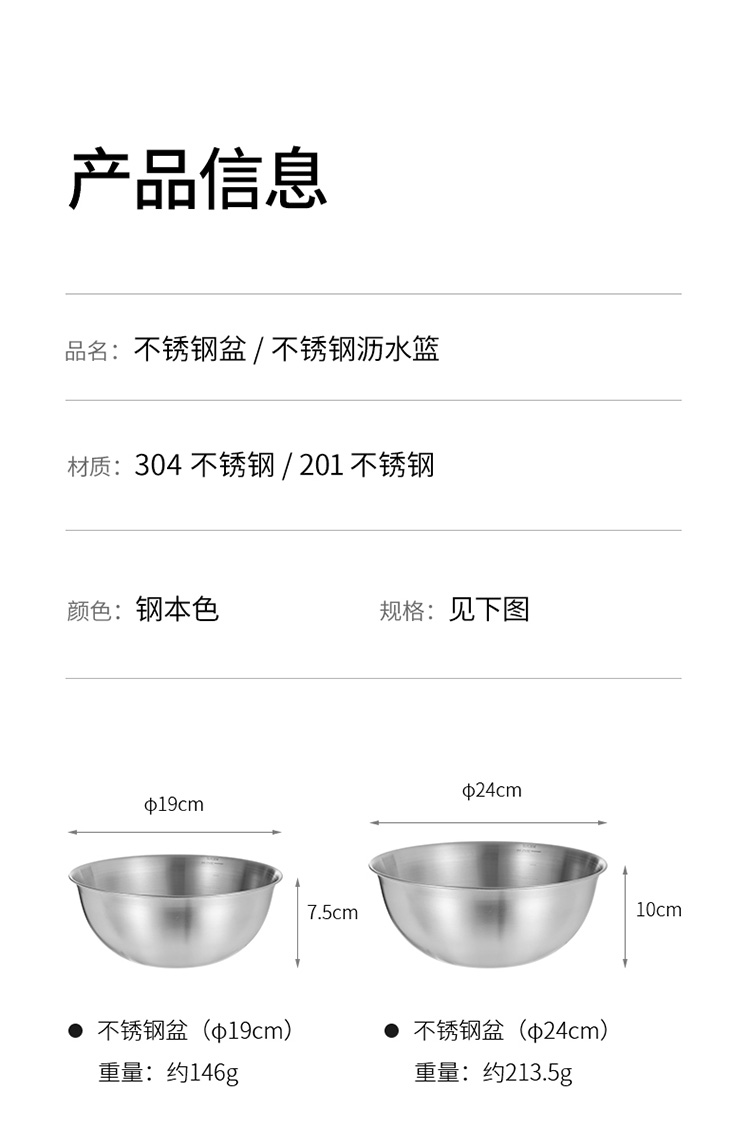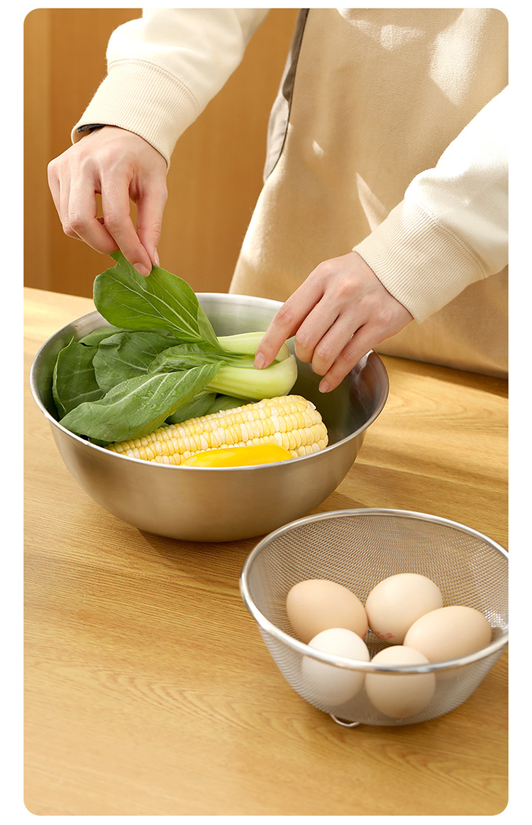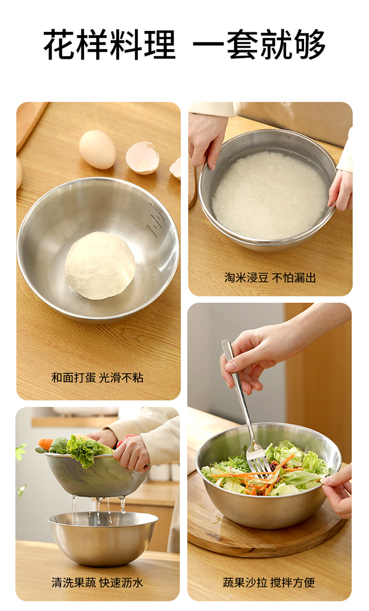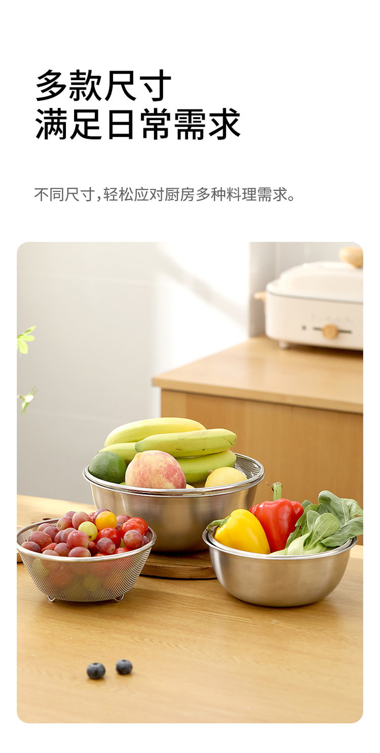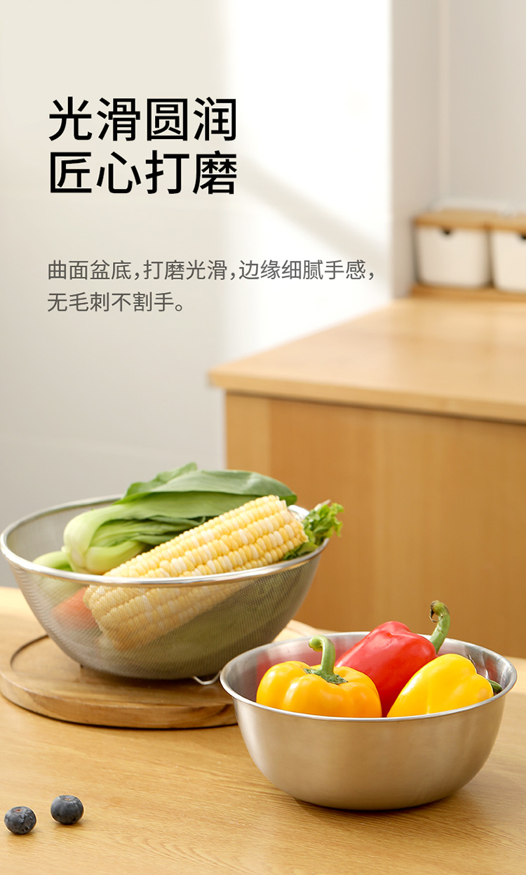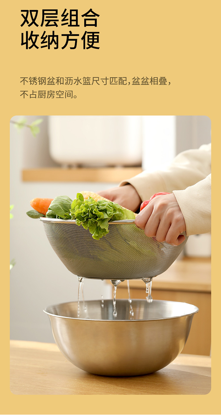 FaSoLa不锈钢盆套装304厨房家用打蛋和面盆洗菜盆沥水篮