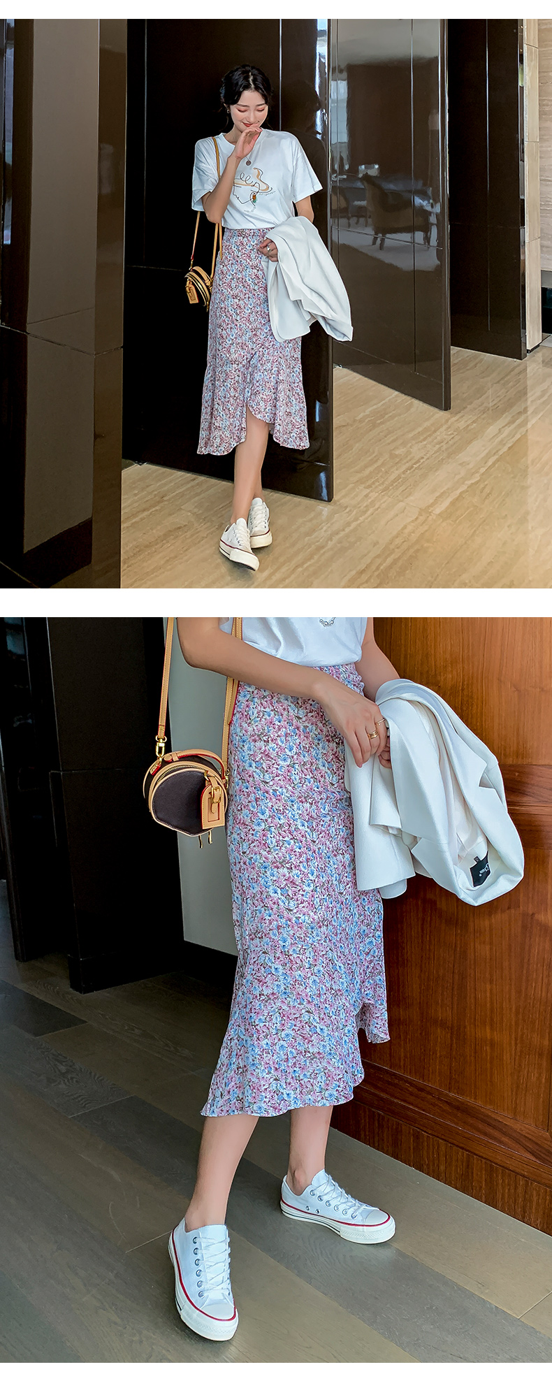欧芮儿碎花鱼尾半身裙2020早秋气质优雅中长款高腰不规则A字裙