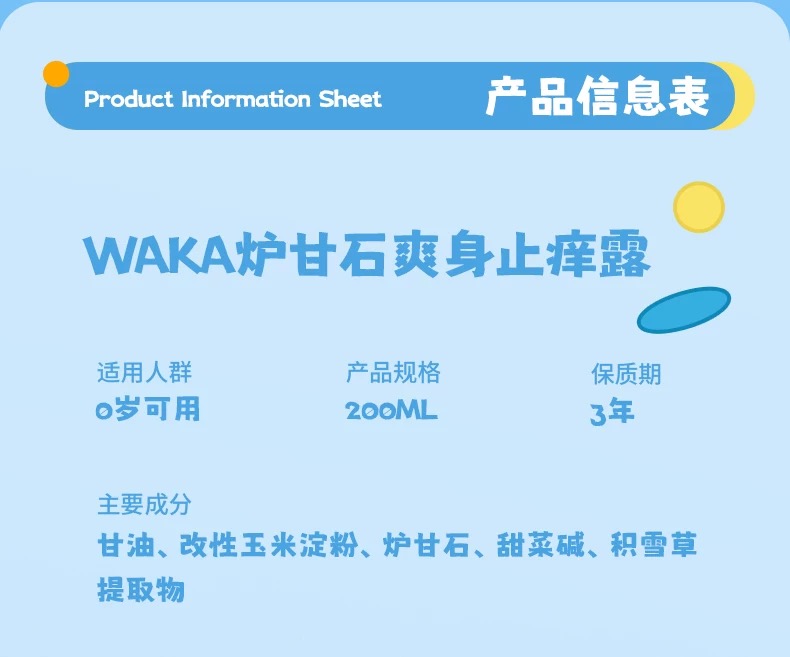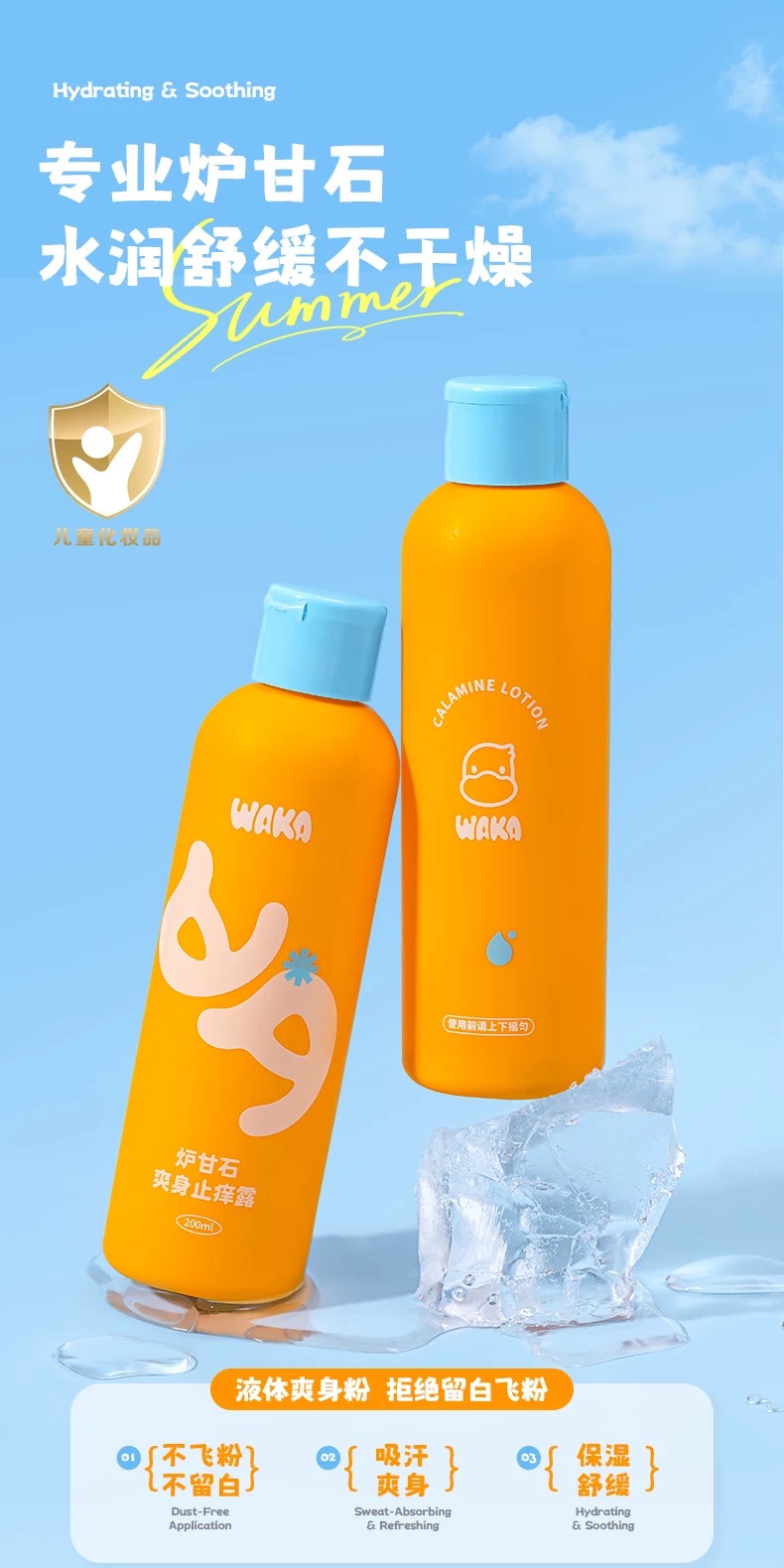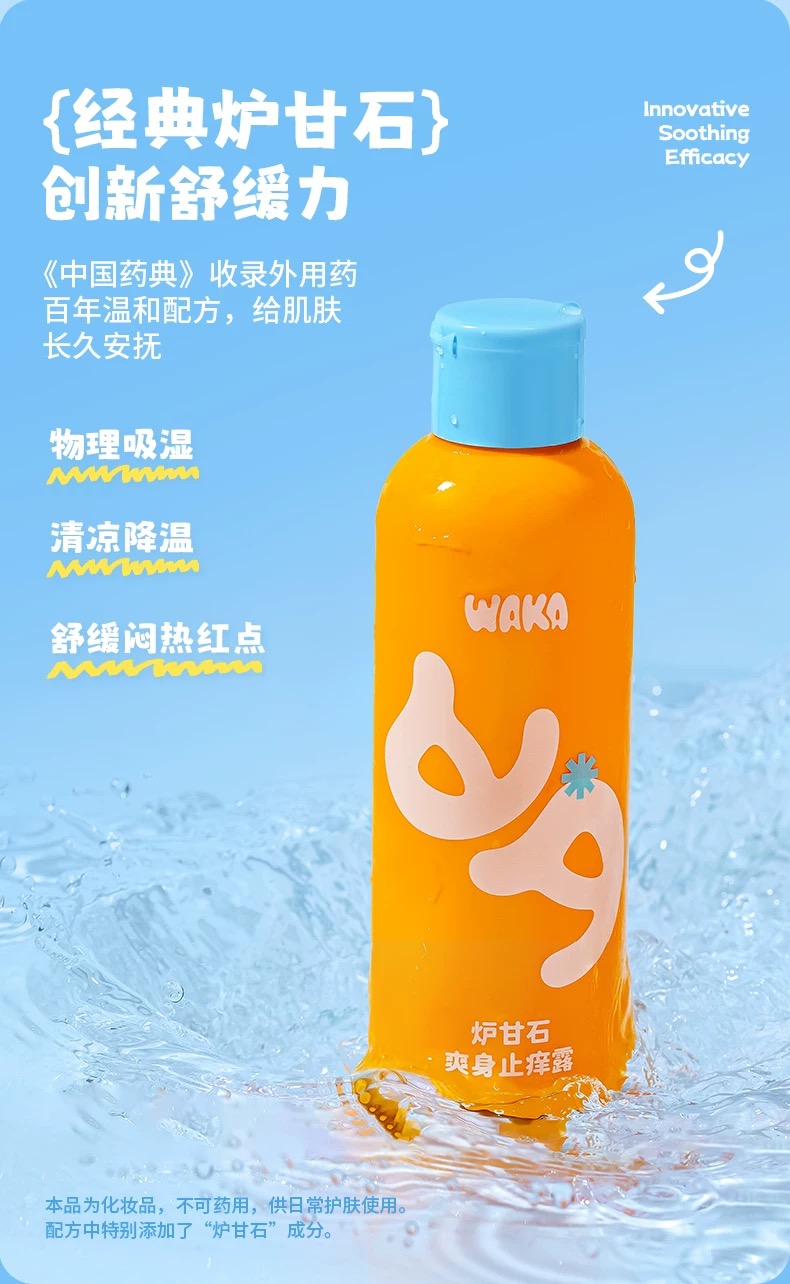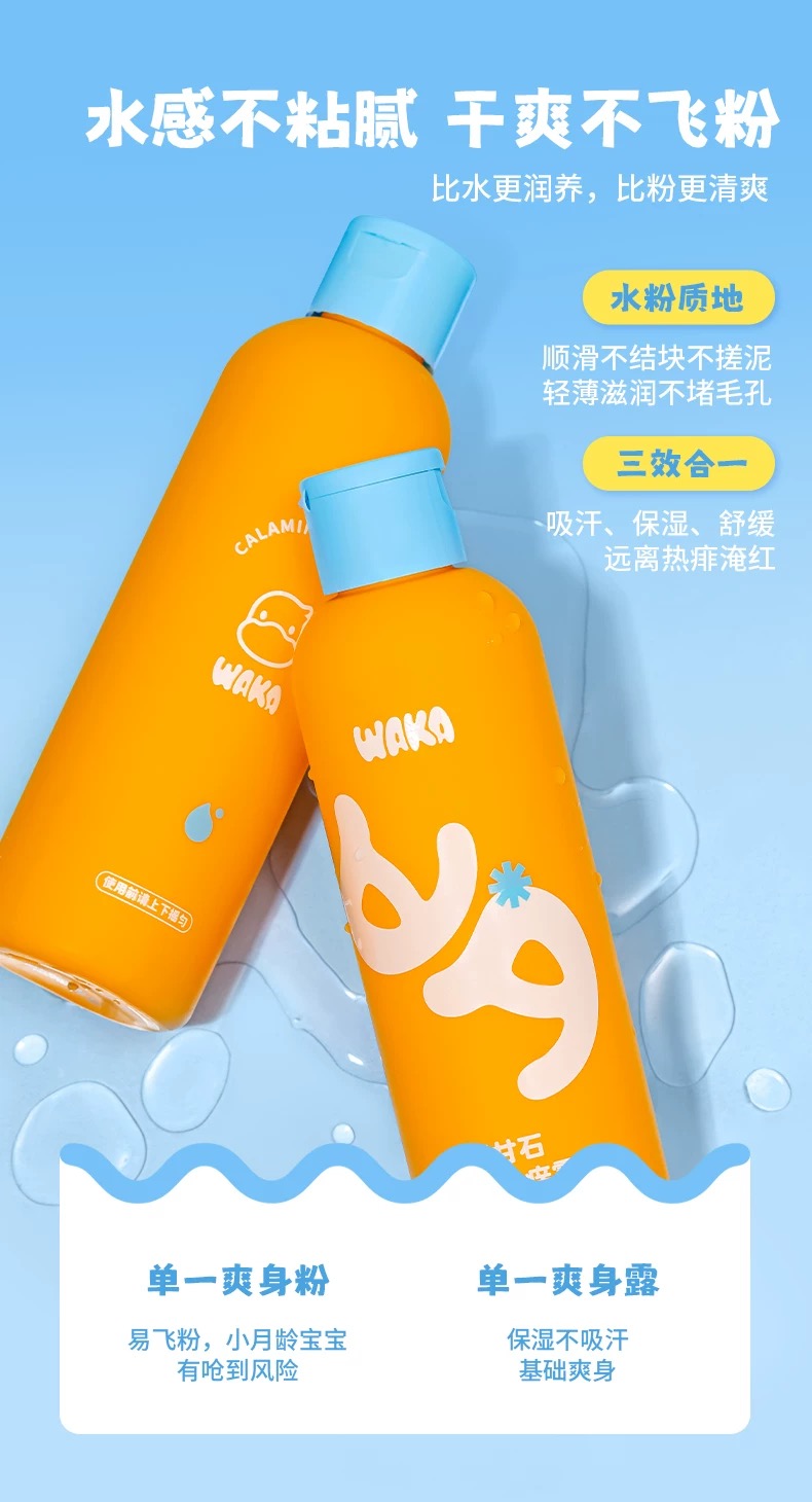 WAKA炉甘石爽身露新生婴儿童液体痱子粉止痒爽身粉补水保湿不飞粉