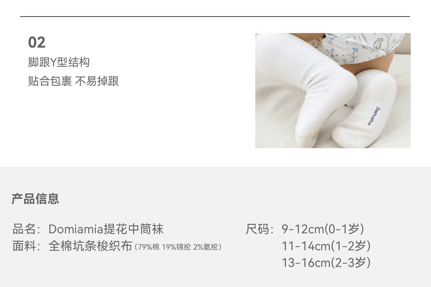 Domiamia 婴幼儿中筒袜 高颜值秋冬棉袜 纯色防滑袜