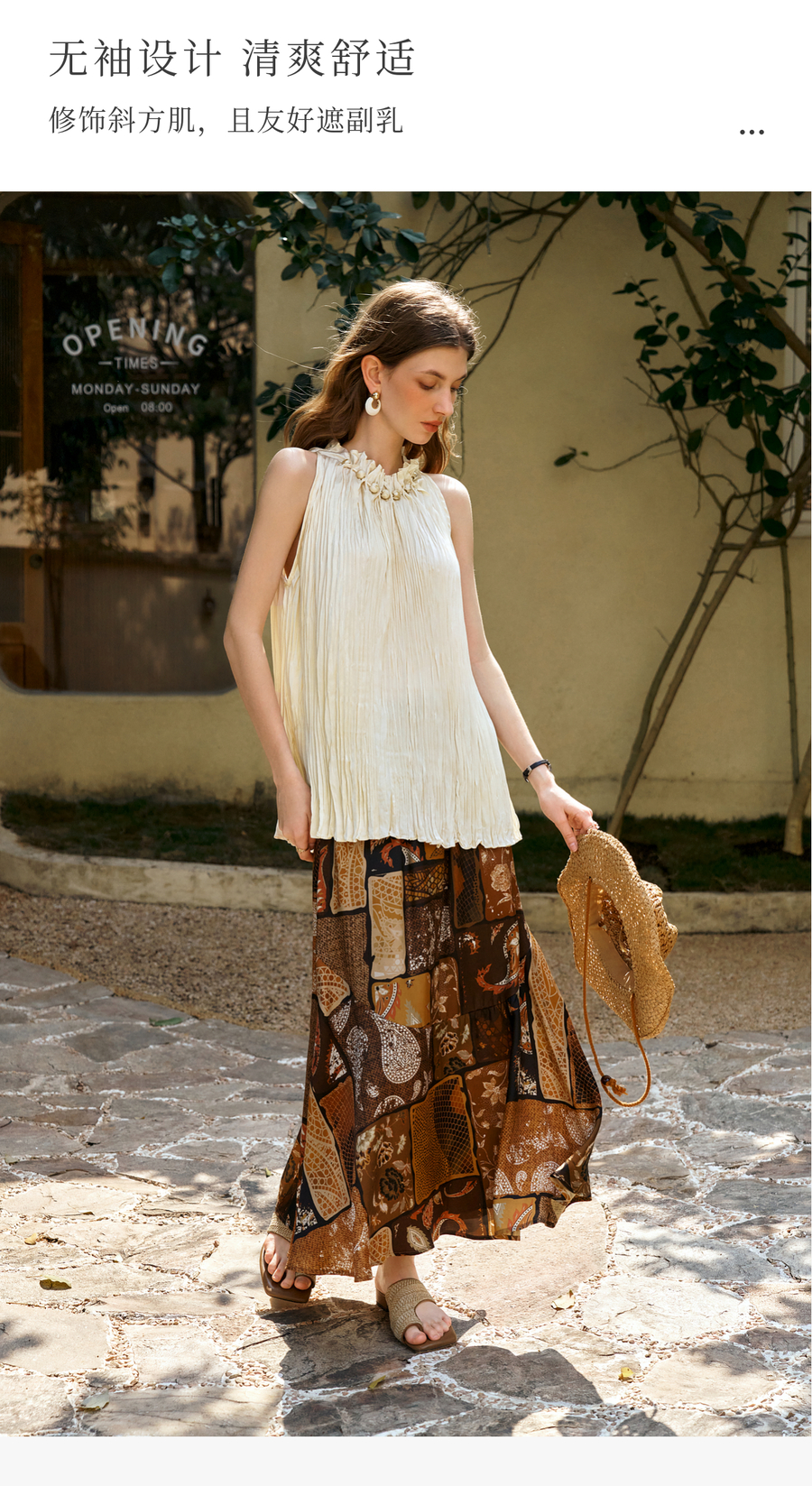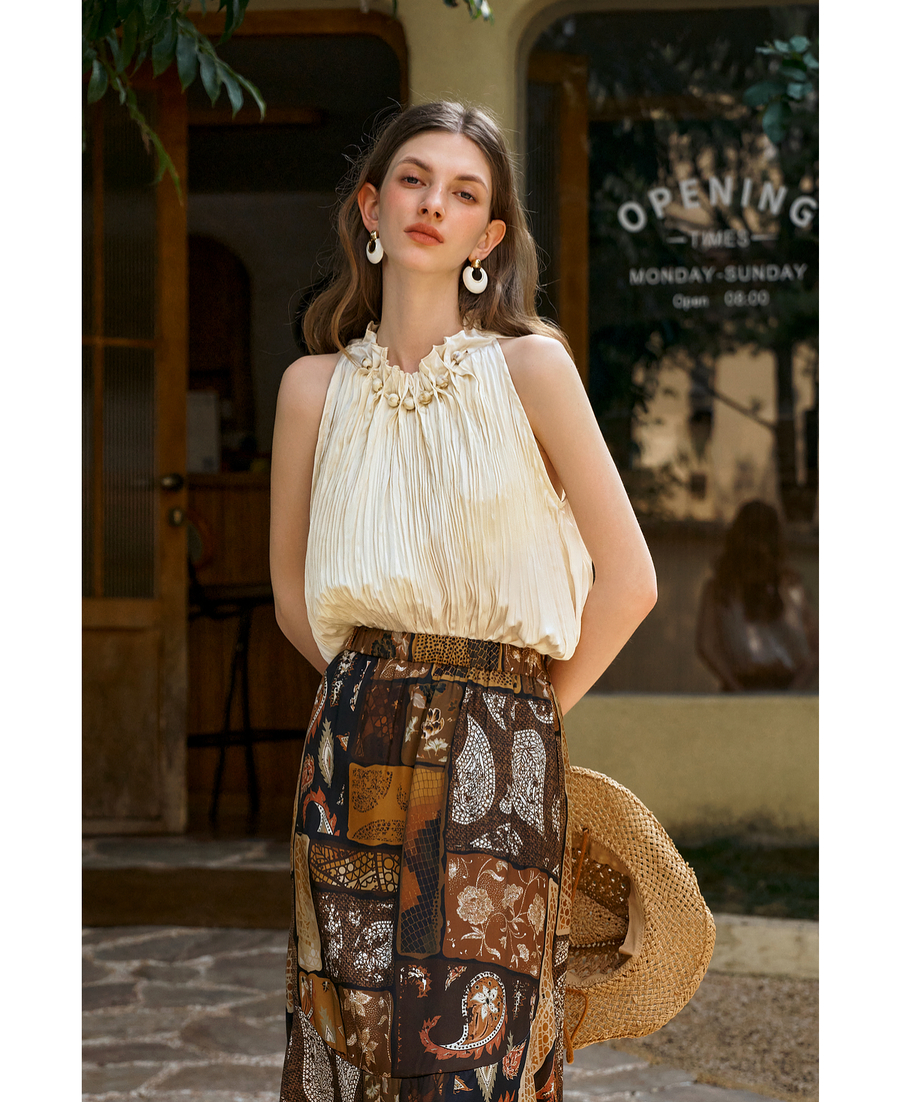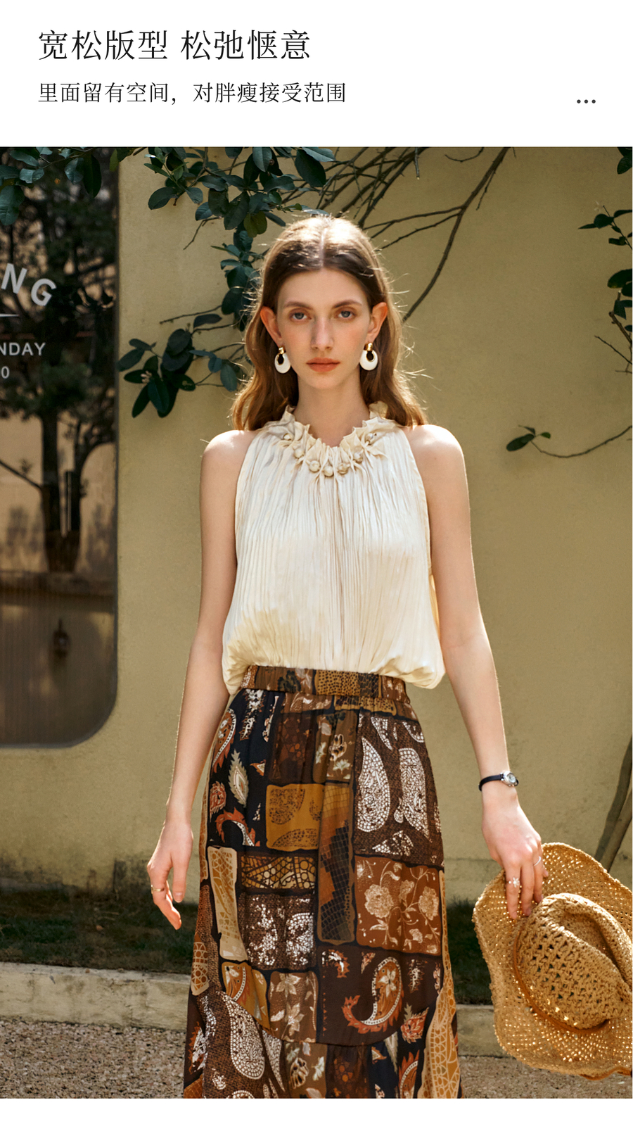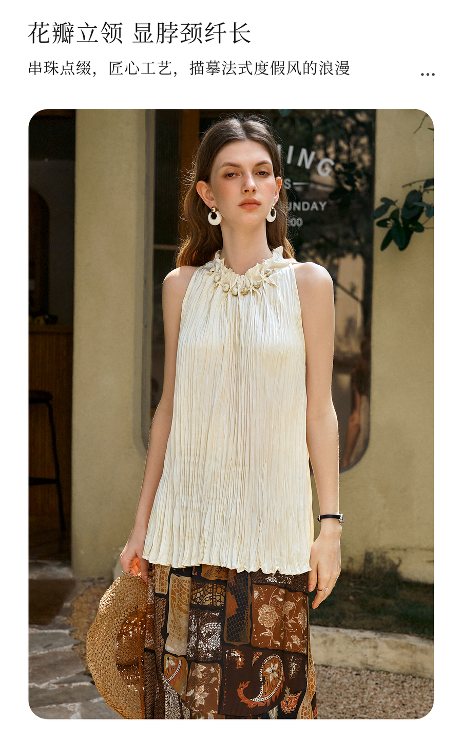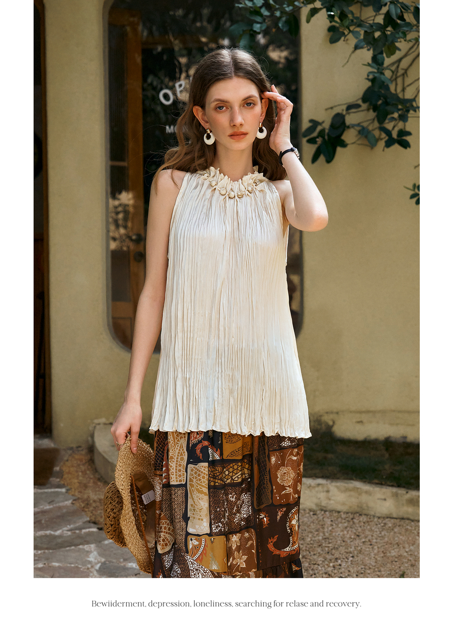 OLrain欧芮儿无袖花瓣领度假风上衣女夏季2025新款宽松显瘦背心
