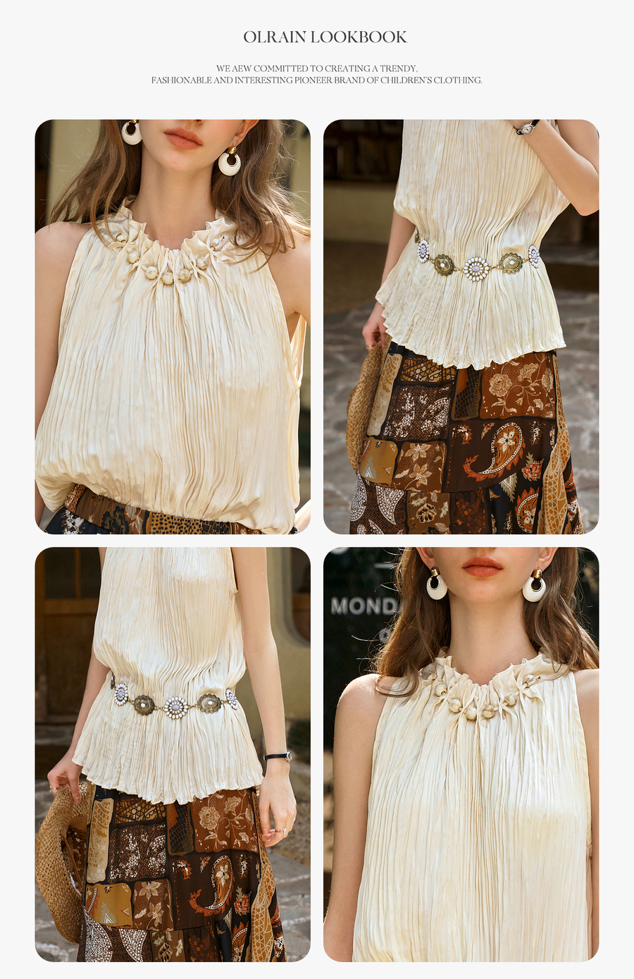 - “精致”是欧芮儿olrain品牌文化的核心,欧芮儿认为,精致的女人,不但要外在动人,更要内在迷人,内外兼修,有魅力、有气质、有内涵,自信而不自傲,优雅而不矫揉,自有万种风情而不轻浮,更不故作矜持。