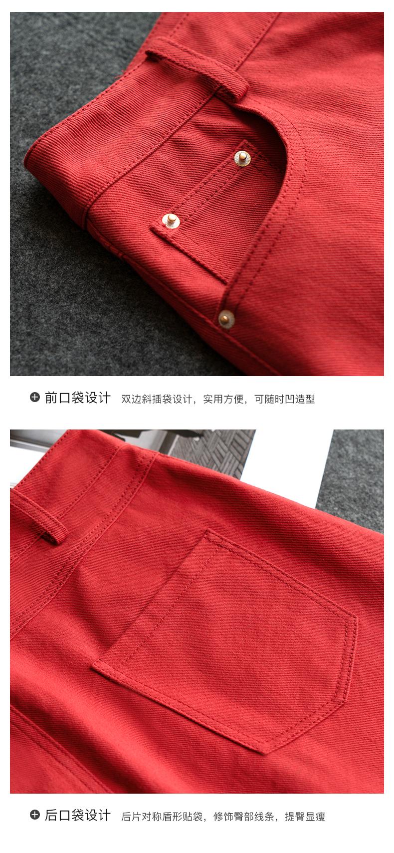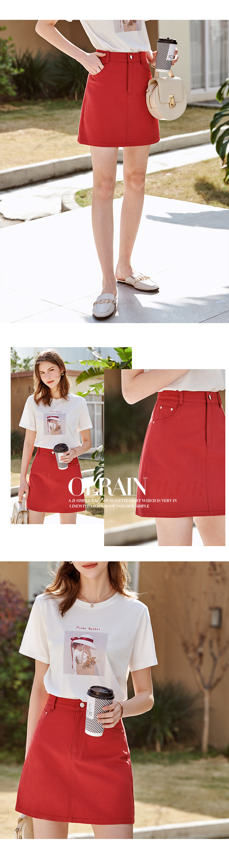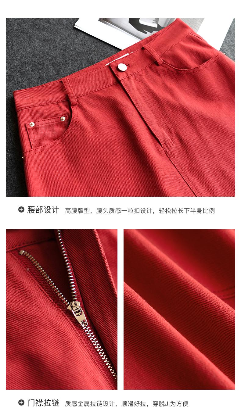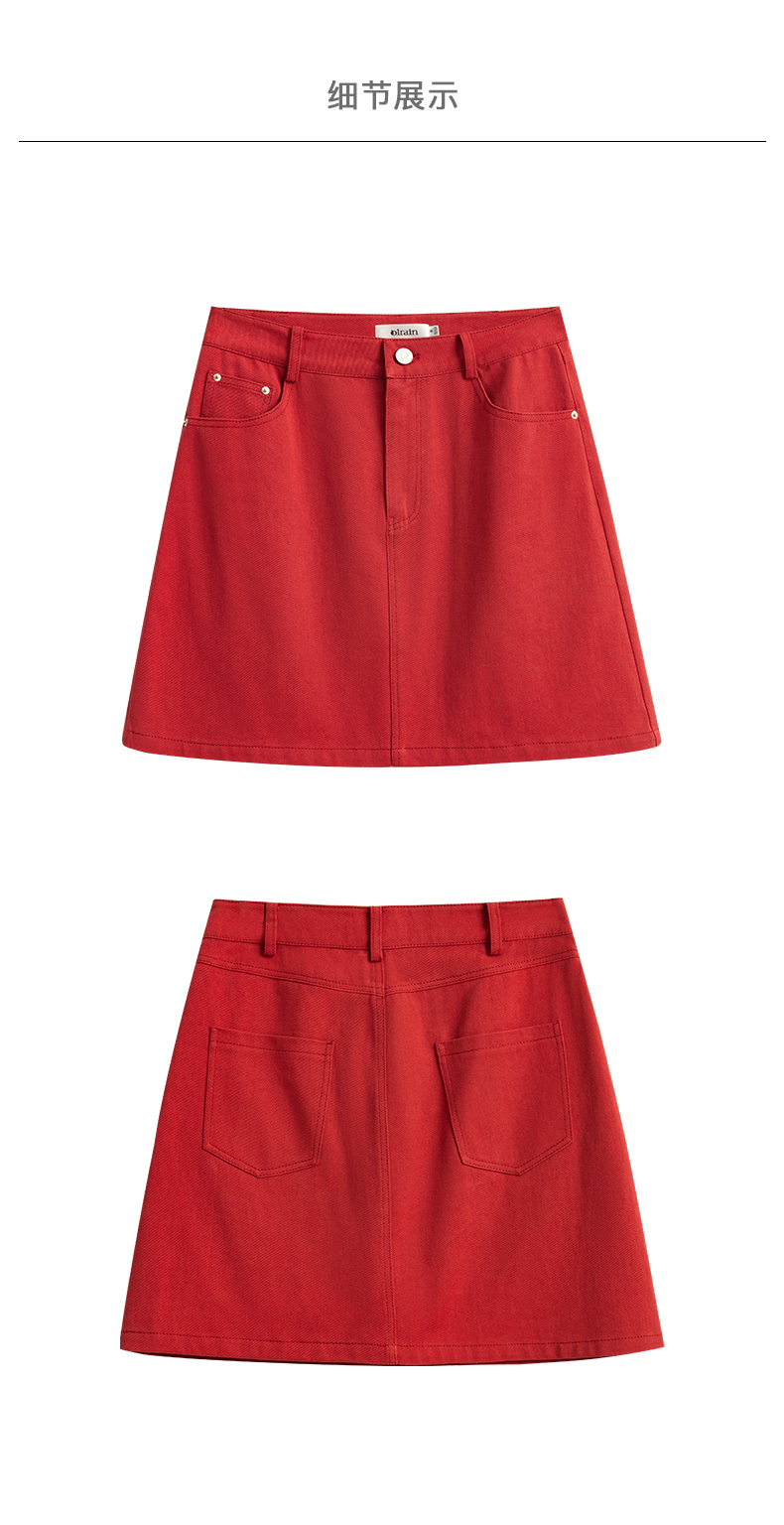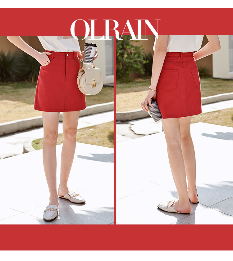 欧芮儿牛仔半身裙2021春夏新款高腰显瘦A字裙红色气质时尚短裙