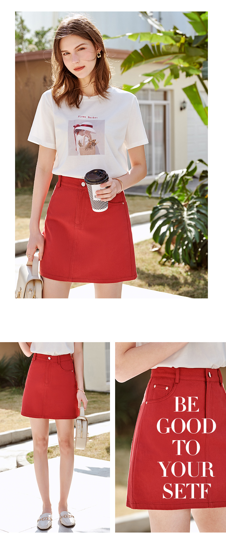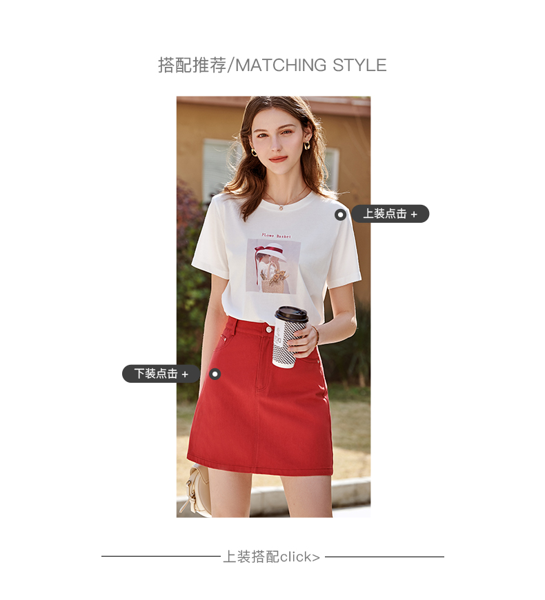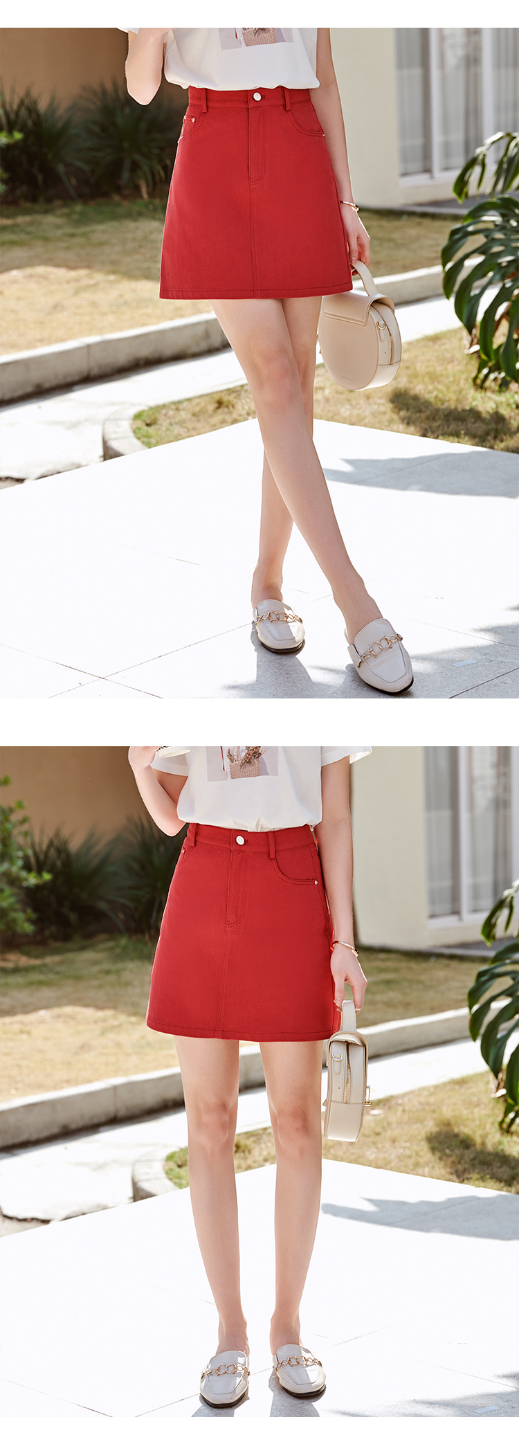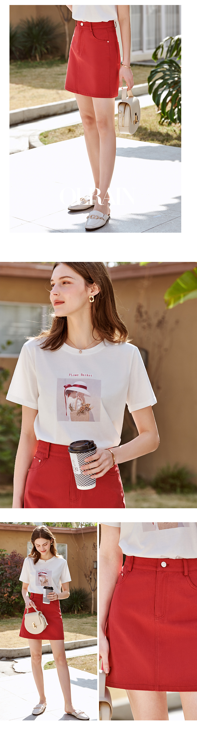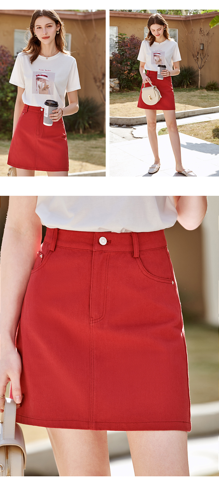 欧芮儿牛仔半身裙2021春夏新款高腰显瘦A字裙红色气质时尚短裙