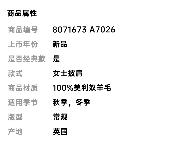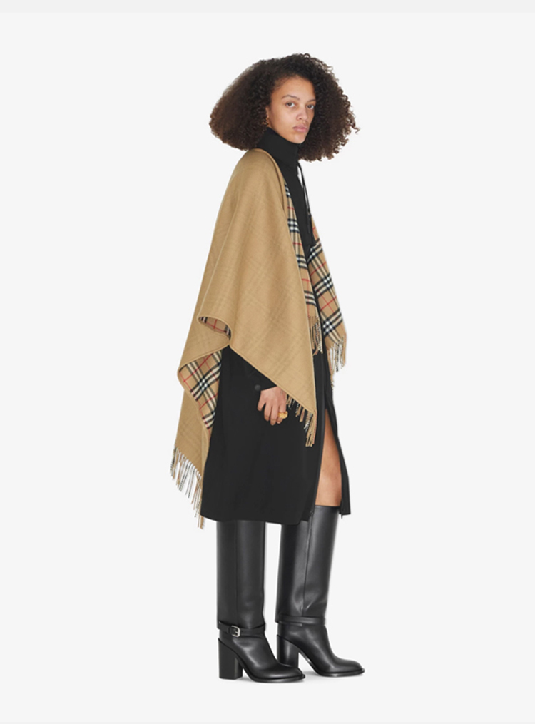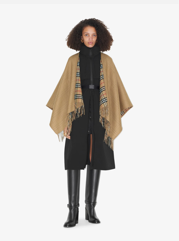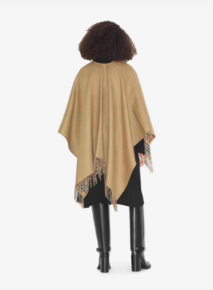 BURBERRY 巴宝莉 女士格纹羊毛双面斗篷披肩 卡其色 8071673 A7026