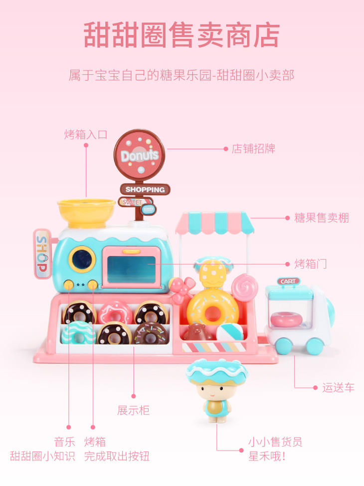 【和宝宝一起分享烘焙的乐趣】儿童过家家益智玩具 灯光音效 智能互动 甜甜圈商店玩具