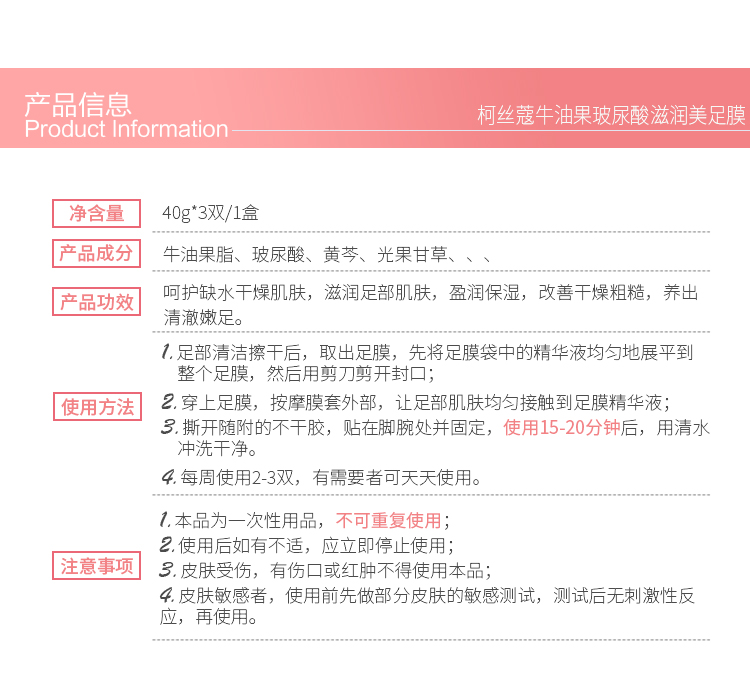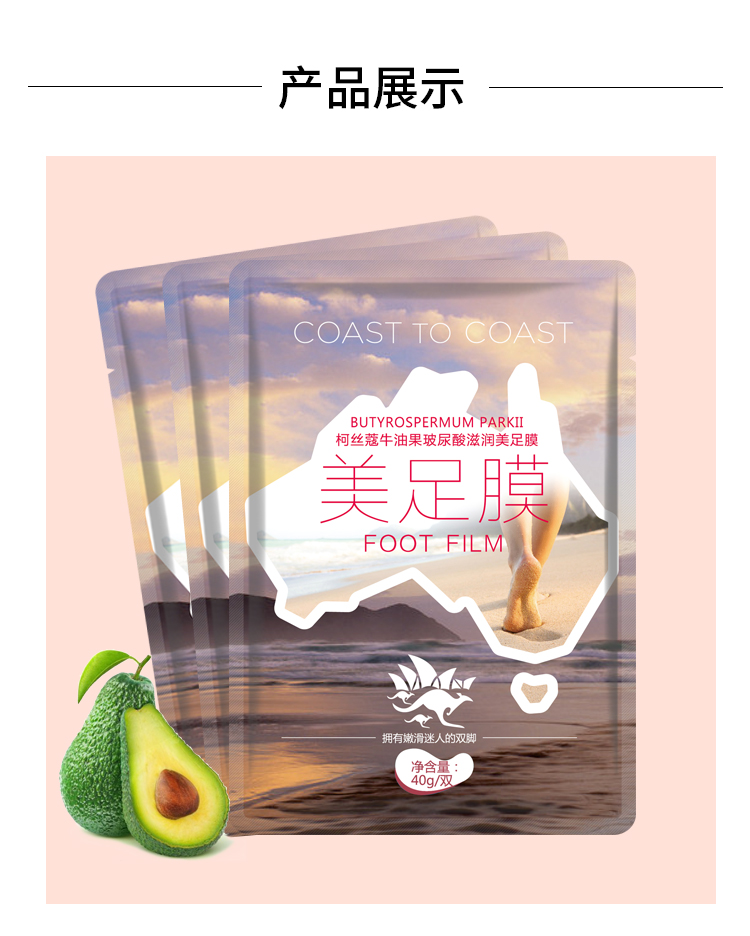 跨界合作| 柯丝蔻牛油果玻尿酸滋润美足膜 保湿滋养舒缓提亮