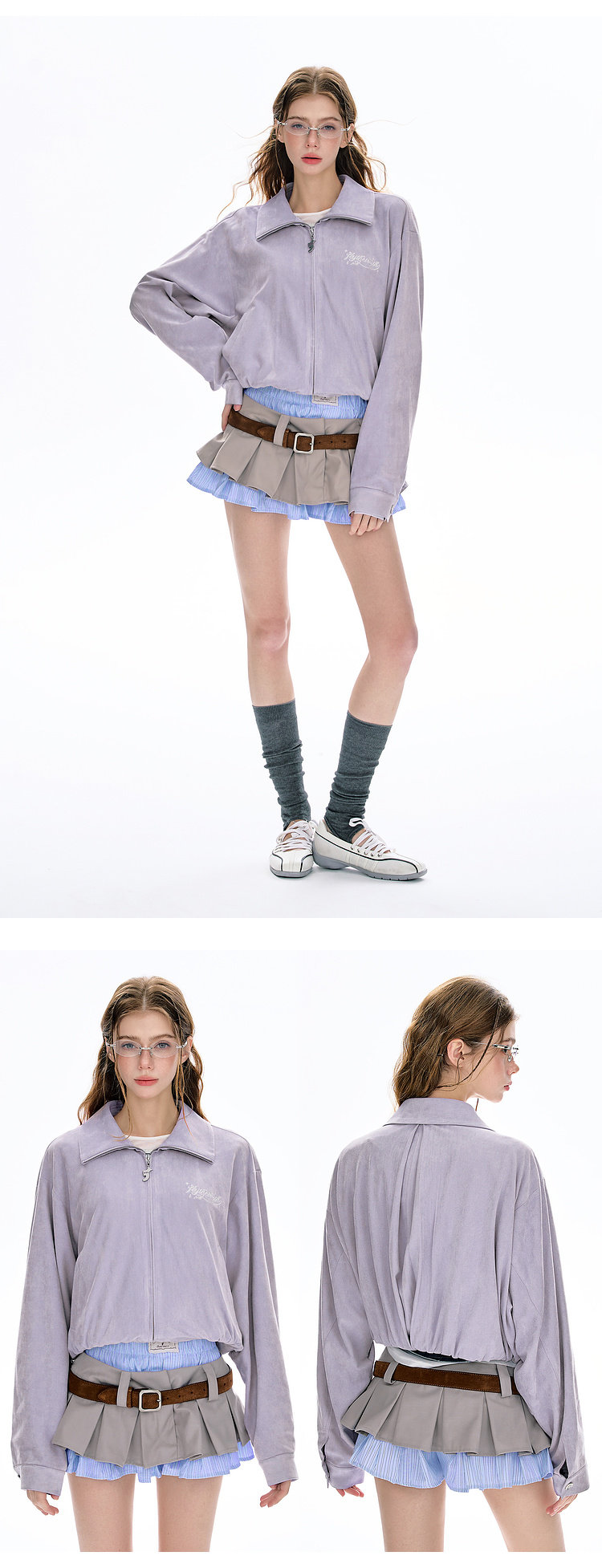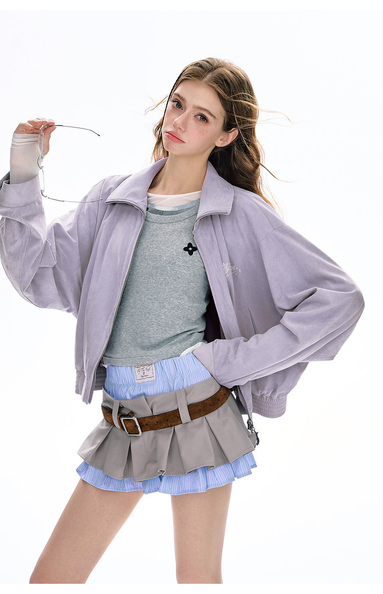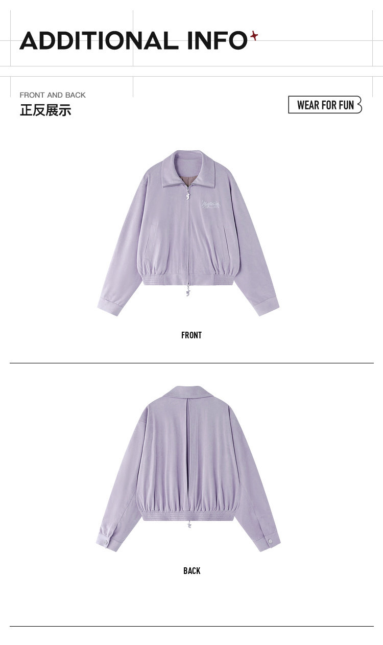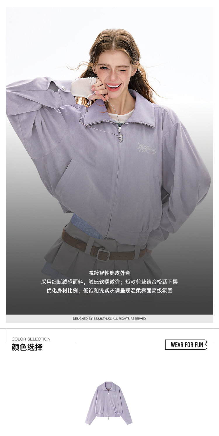 FTT Flythetruth 短款外套女款春2026超火减龄仿麂皮紫色夹克上衣