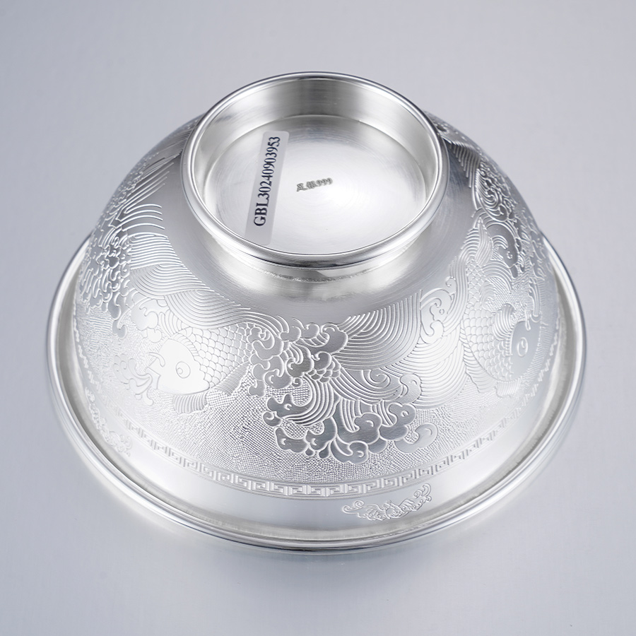子佩集S999银【福鱼临门】碗摆件【FS022】纯银餐具2412