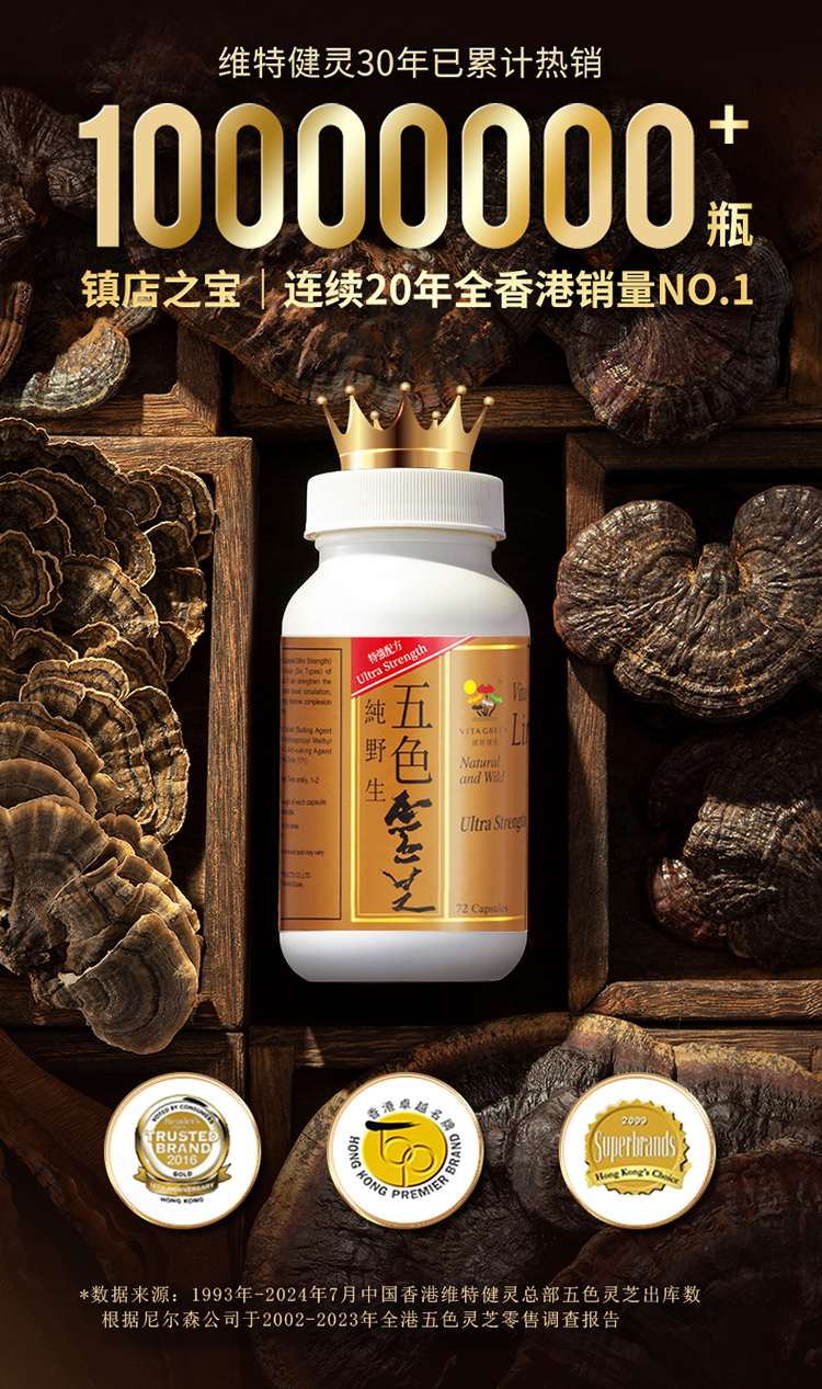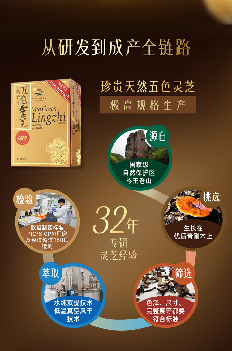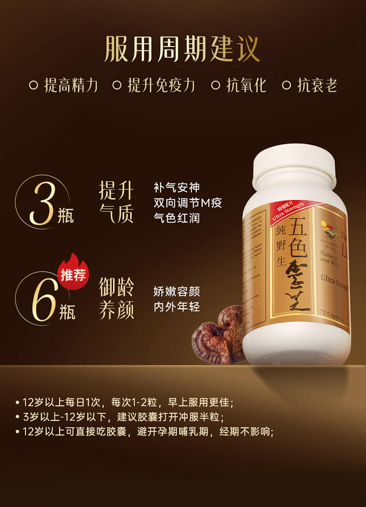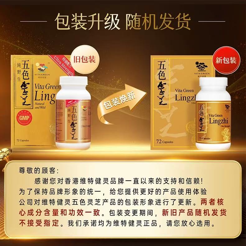 保税直发 Vita Green 维特健灵 五色灵芝 焕颜胶囊小礼盒(五色灵芝焕颜胶囊 30粒/瓶x4+礼盒+礼袋)【五色灵芝新旧包装随机发货】