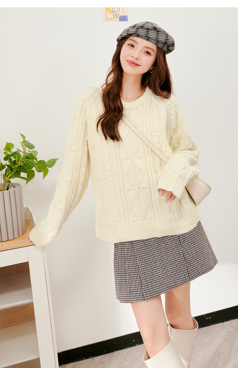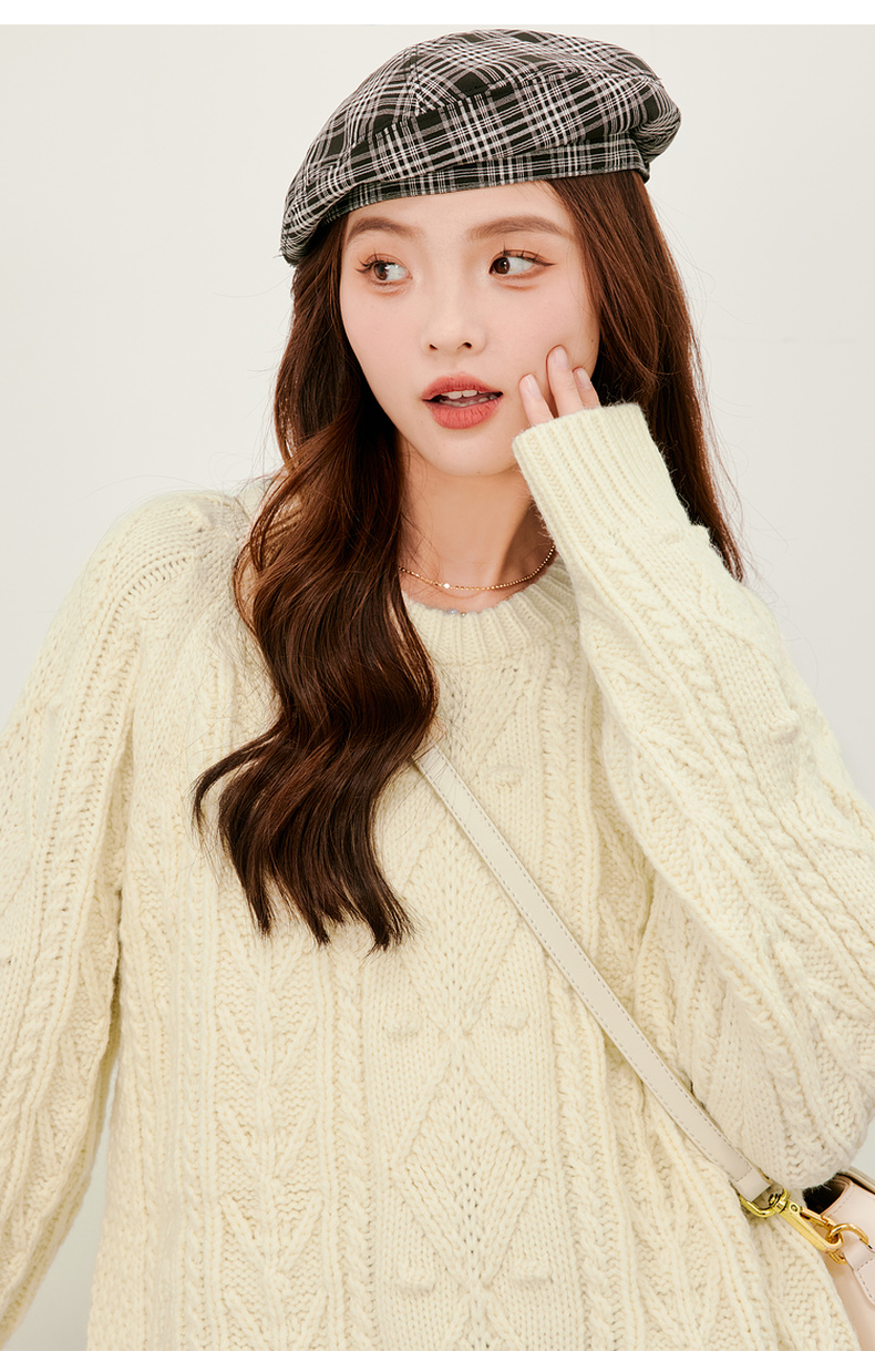 【严选】诗凡黎冬宽松圆领H廓形精致绞花套头衫SEA130591