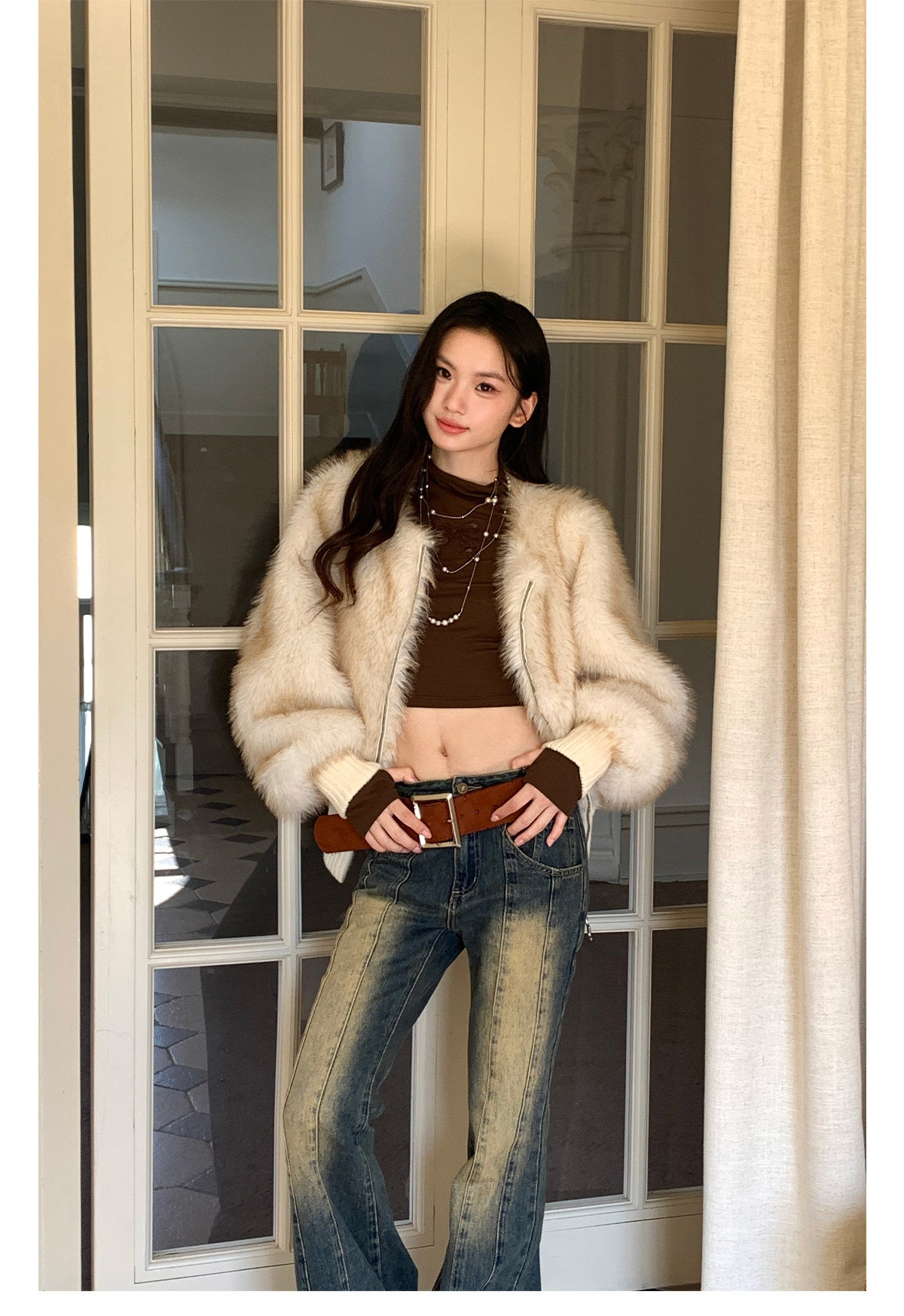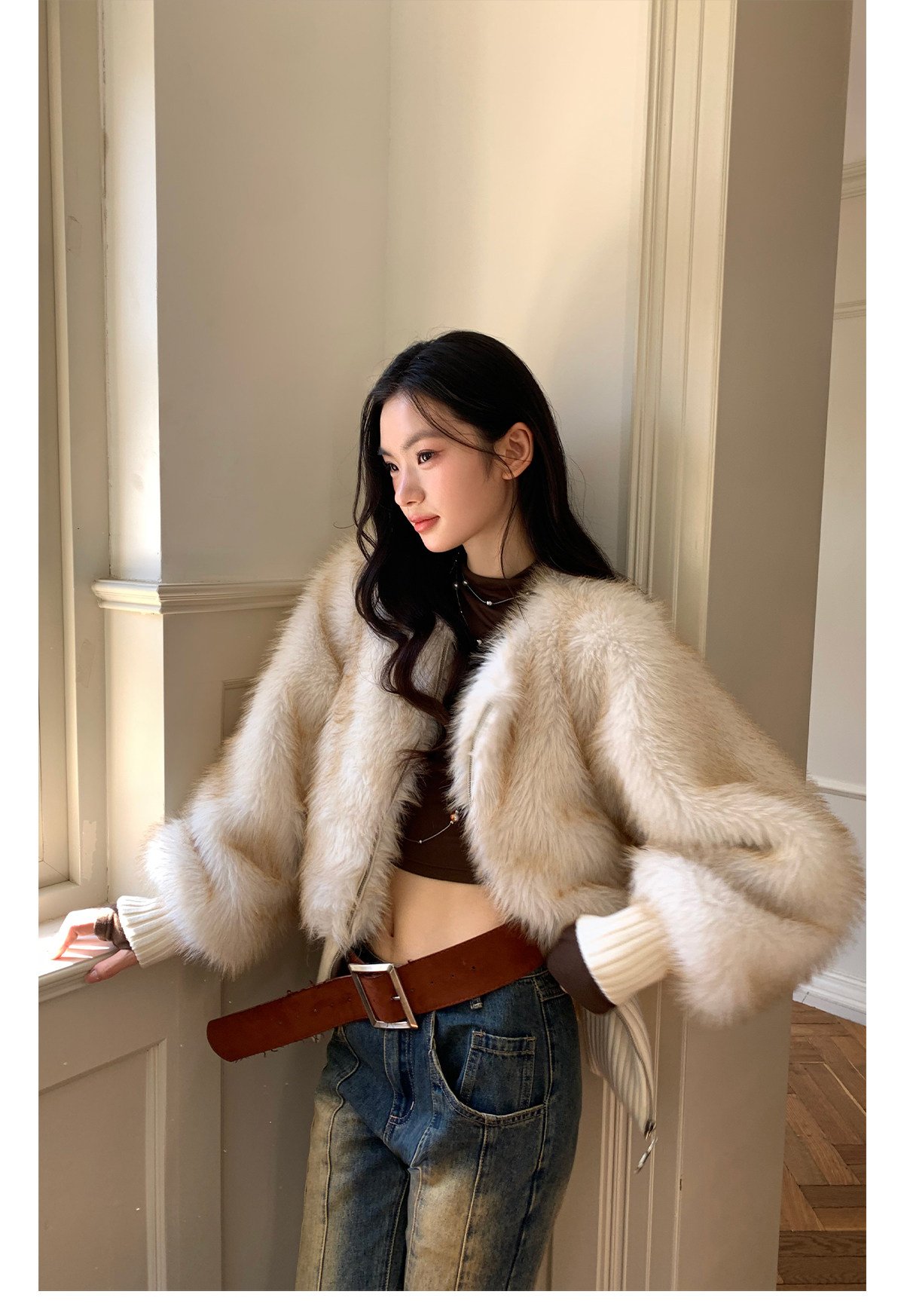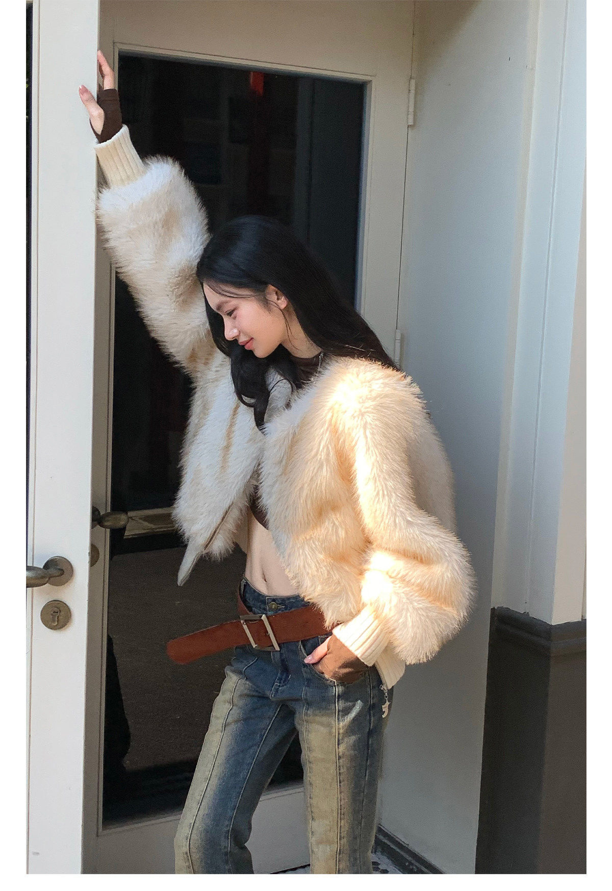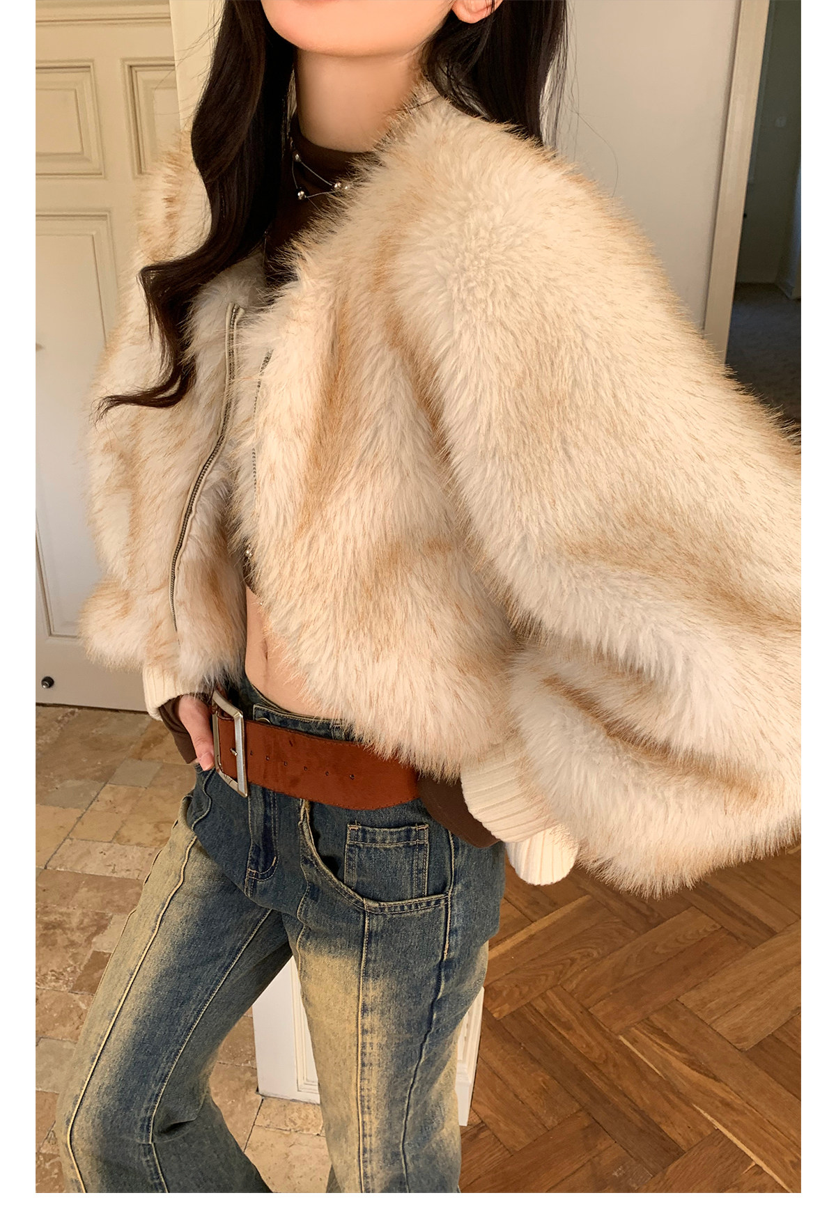 FTT FlyTheTruth『半熟蜜桃』 环保皮草外套女秋冬季保暖毛毛上衣