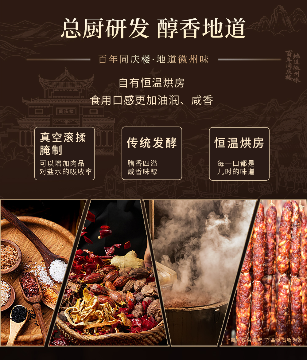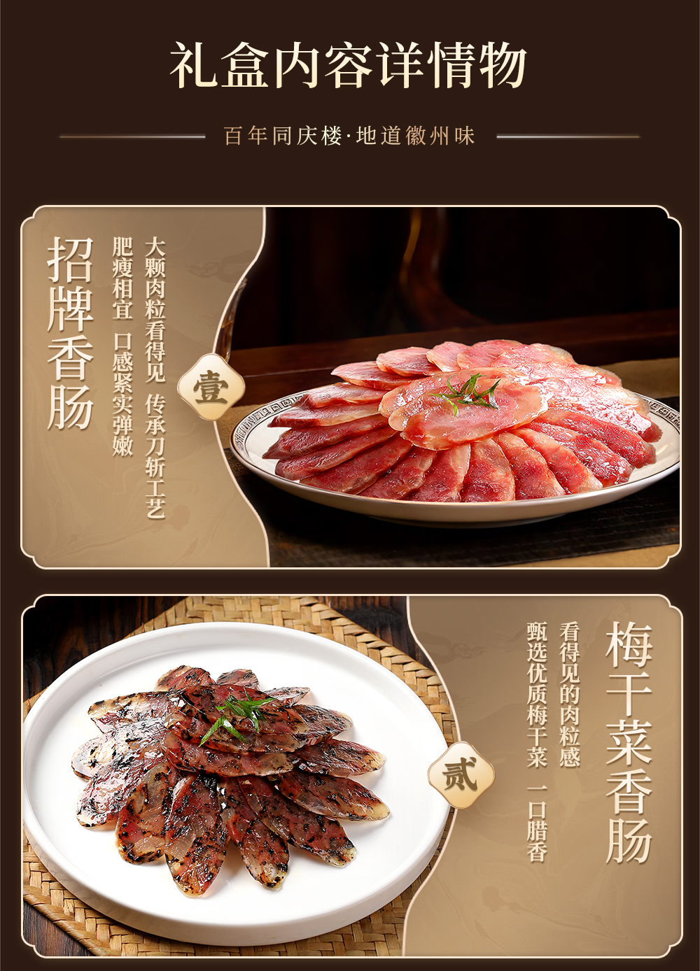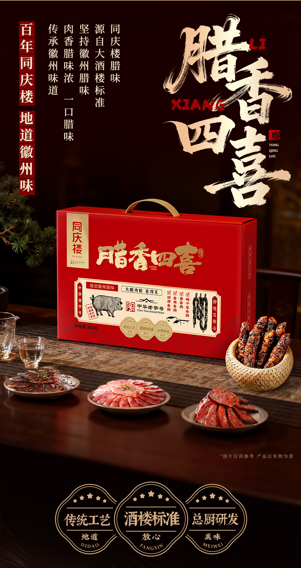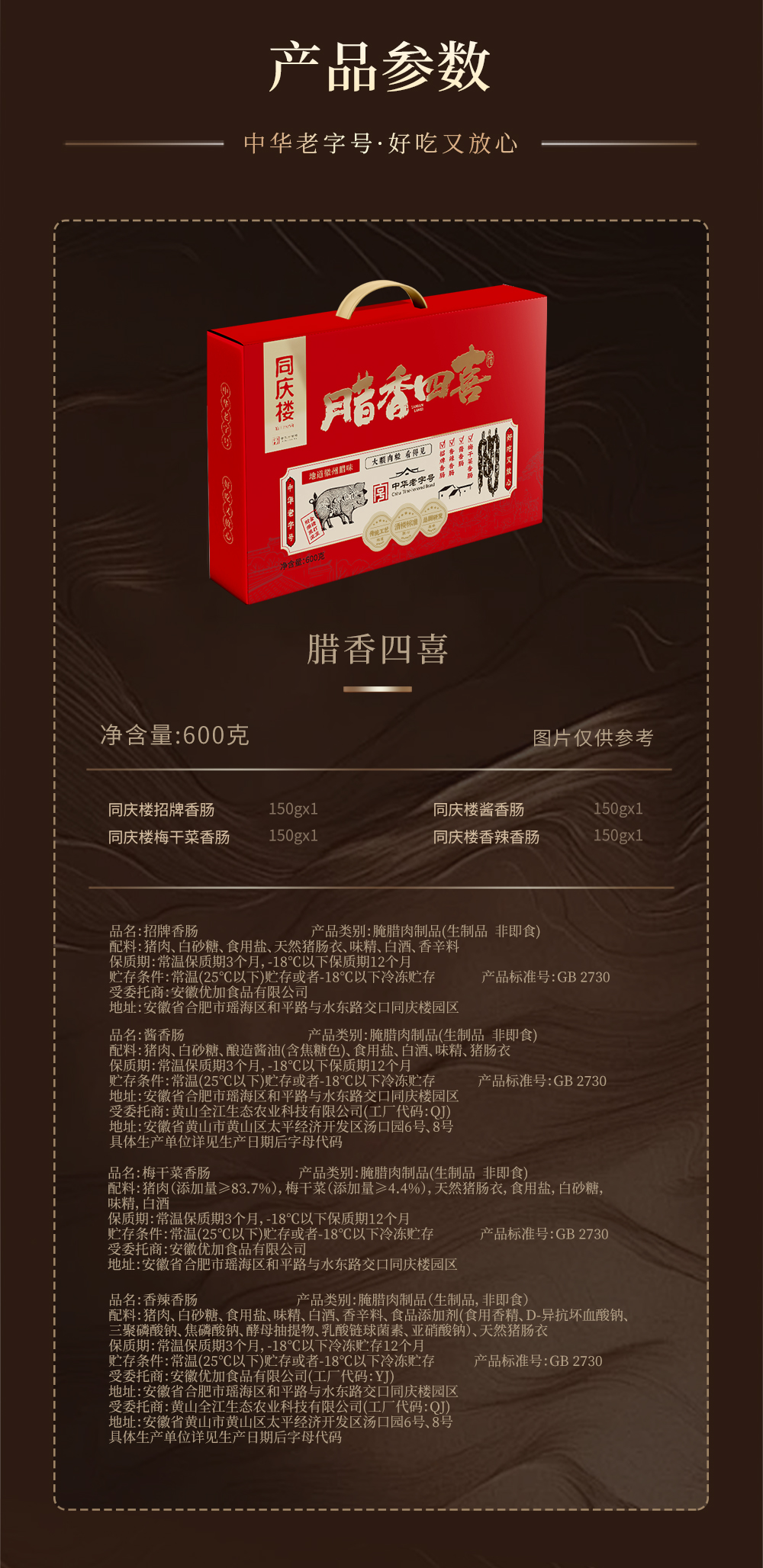 同庆楼 腊香四喜600g (招牌香肠+酱香肠+香辣香肠+梅干菜香肠)严选优质原料 地道徽州味 年货礼盒 48小时发货