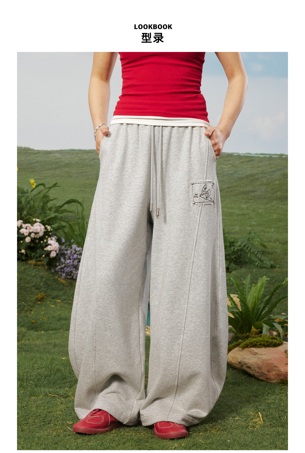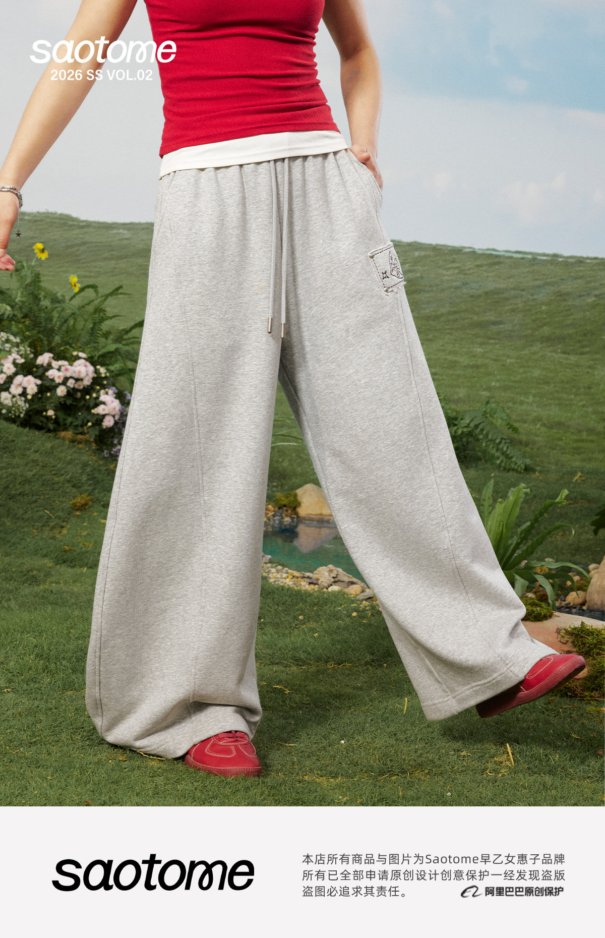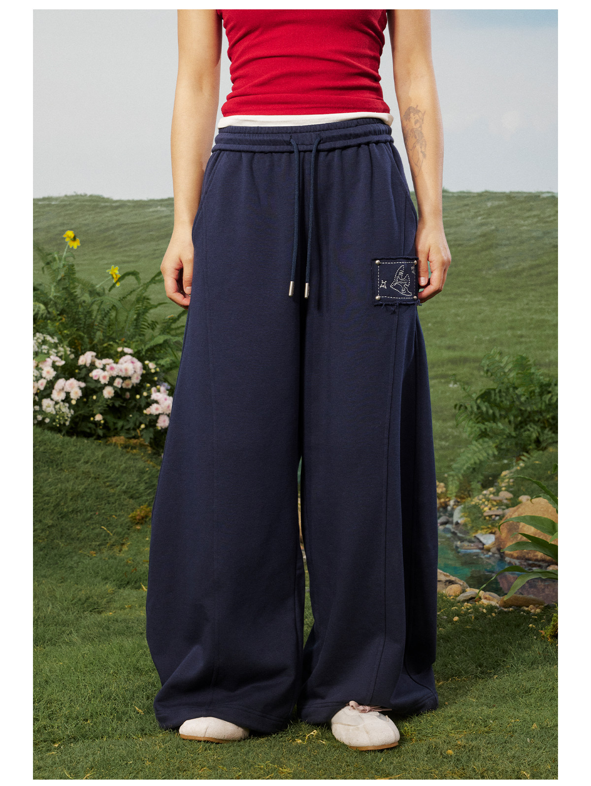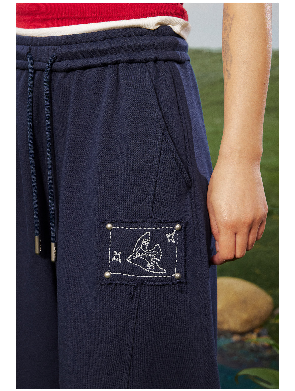 早乙女惠子saotome/STMKZ211753/飞鸟贴布宽松卫裤