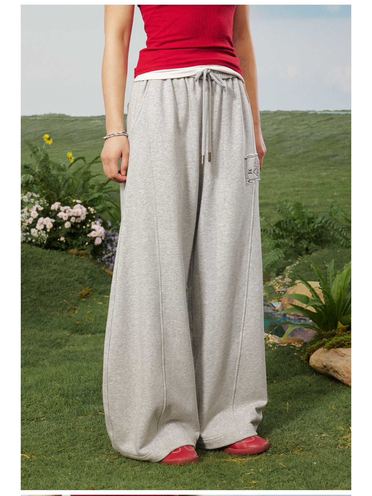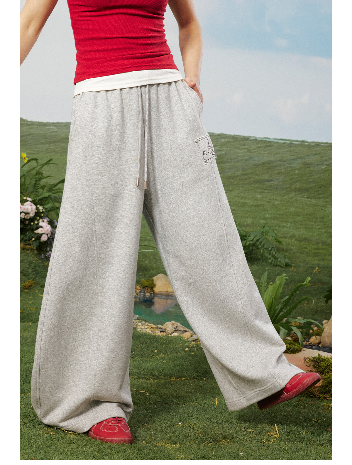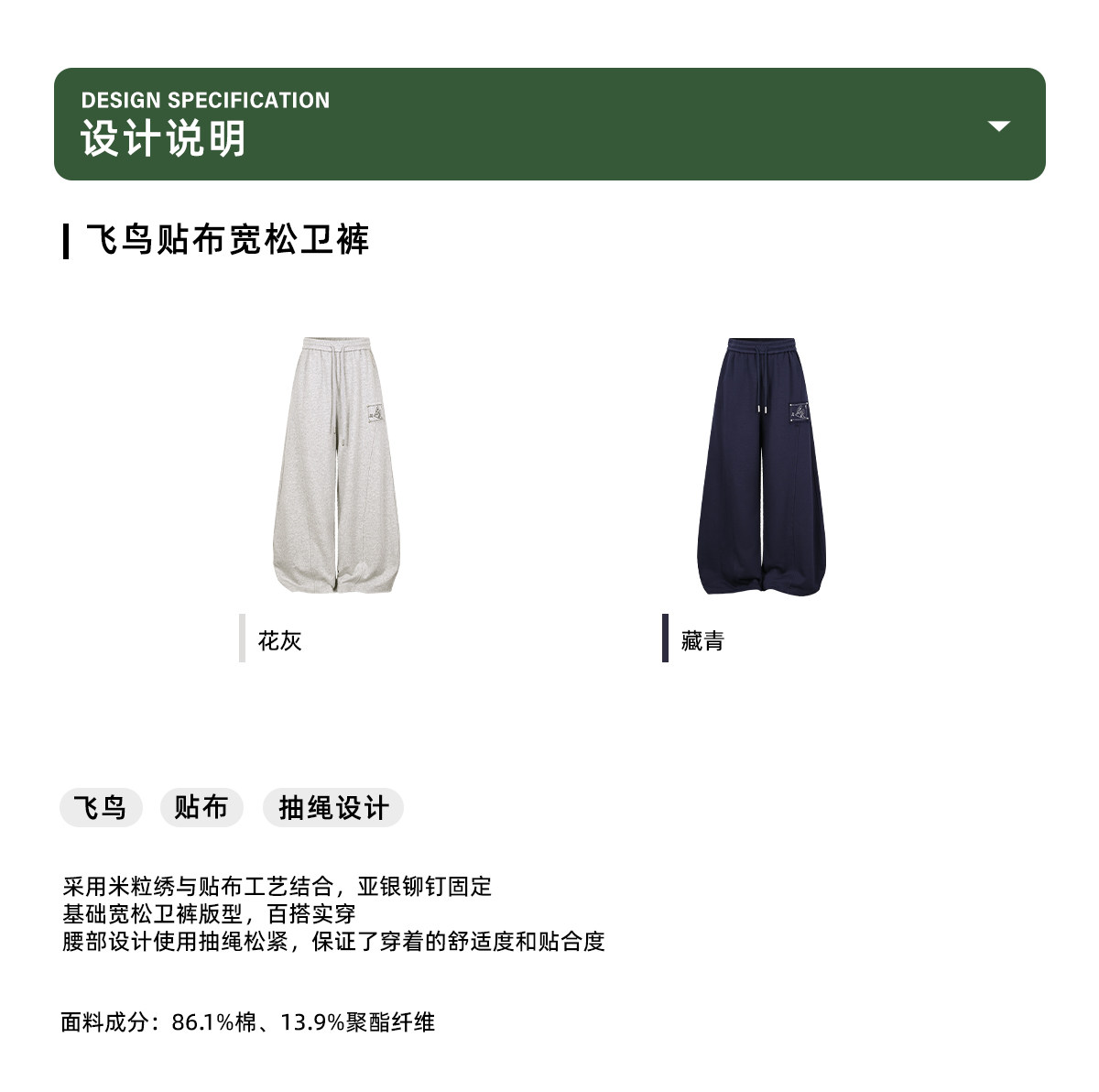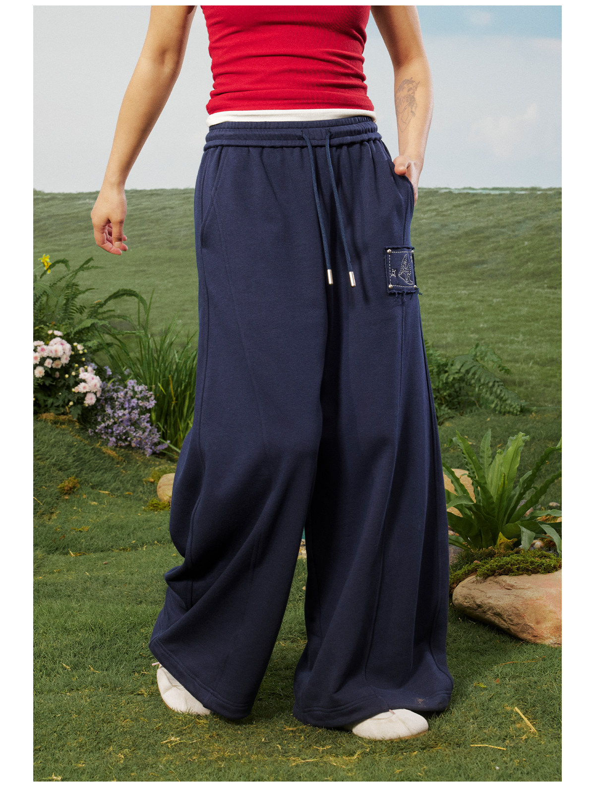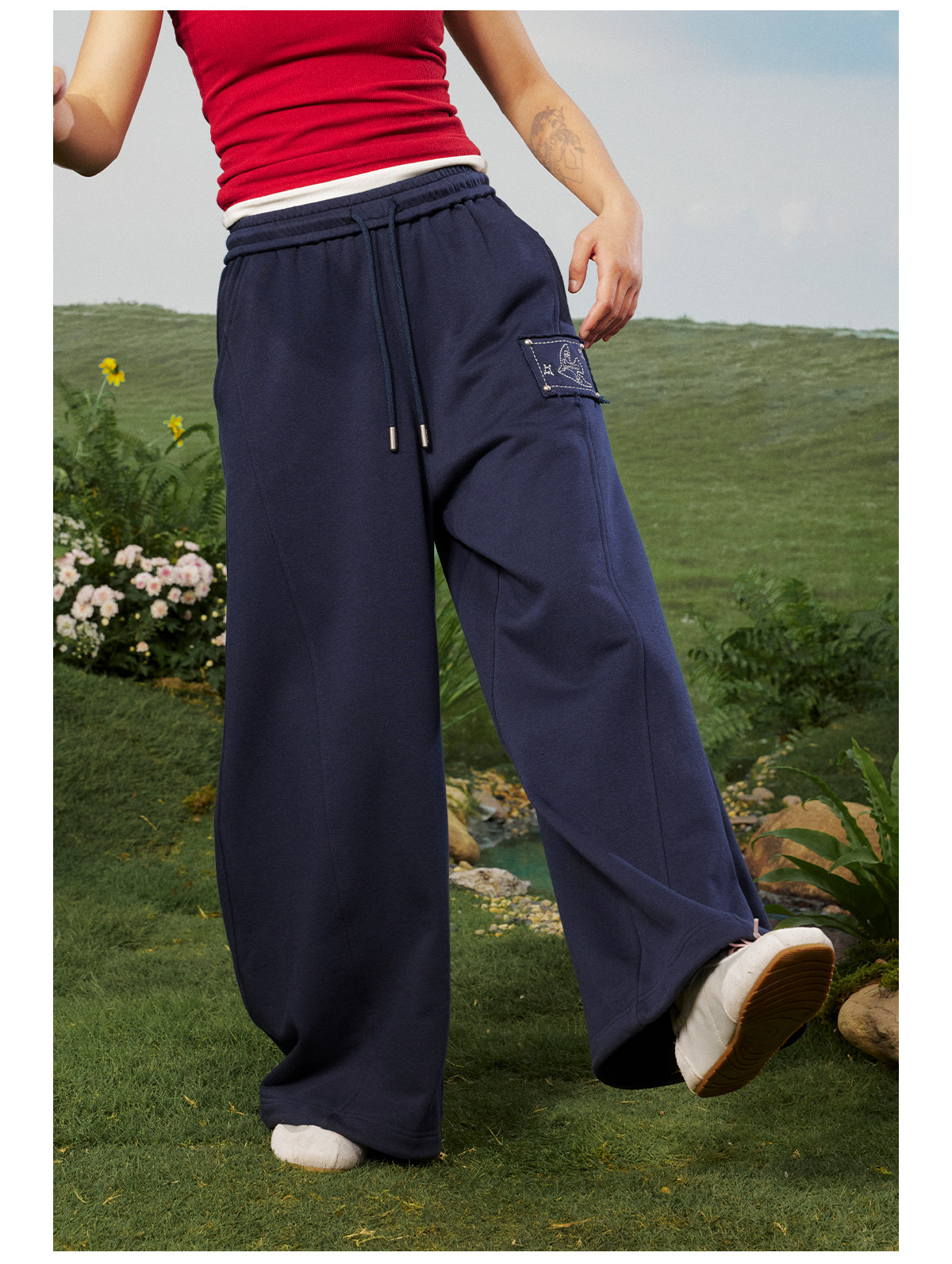 早乙女惠子saotome/STMKZ211753/飞鸟贴布宽松卫裤