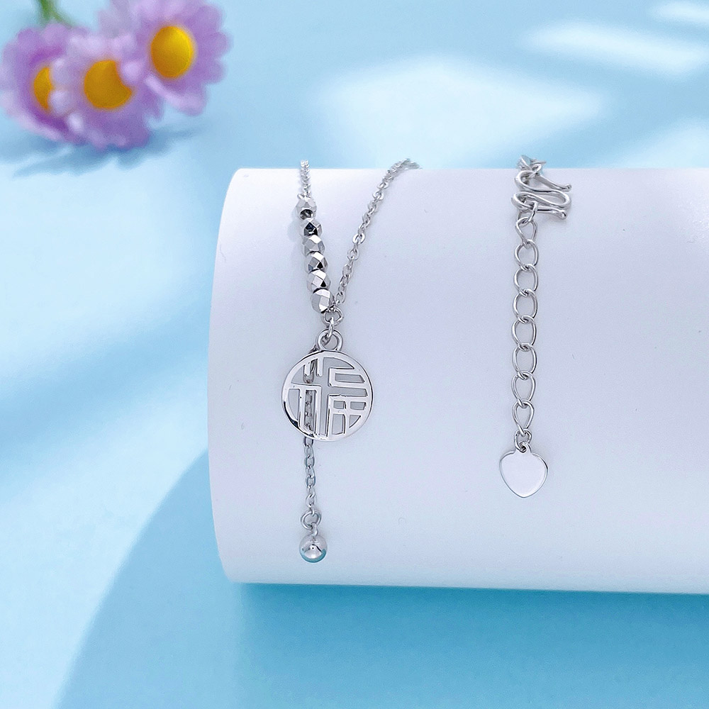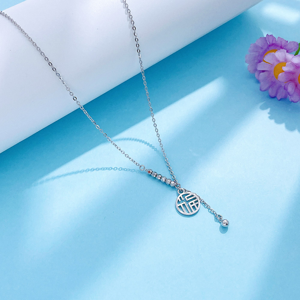 【限时8.8折】【线上铂金馆】PT950 #招财纳福 【精品】铂金镂空小金球吊饰项链招财福字福牌调节套链(BFPTTL00024)预售产品下单后不退款不退货不换货不补差价)