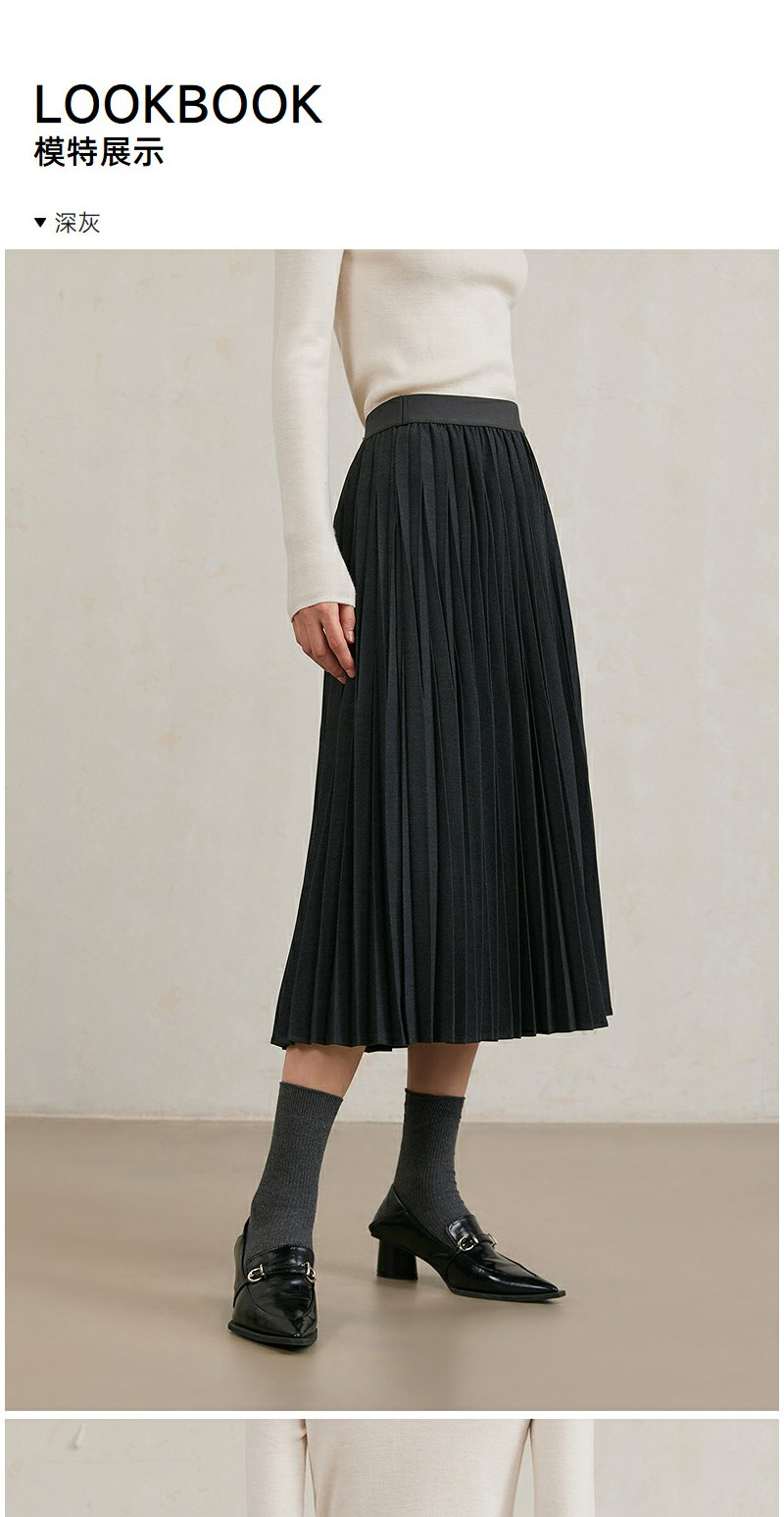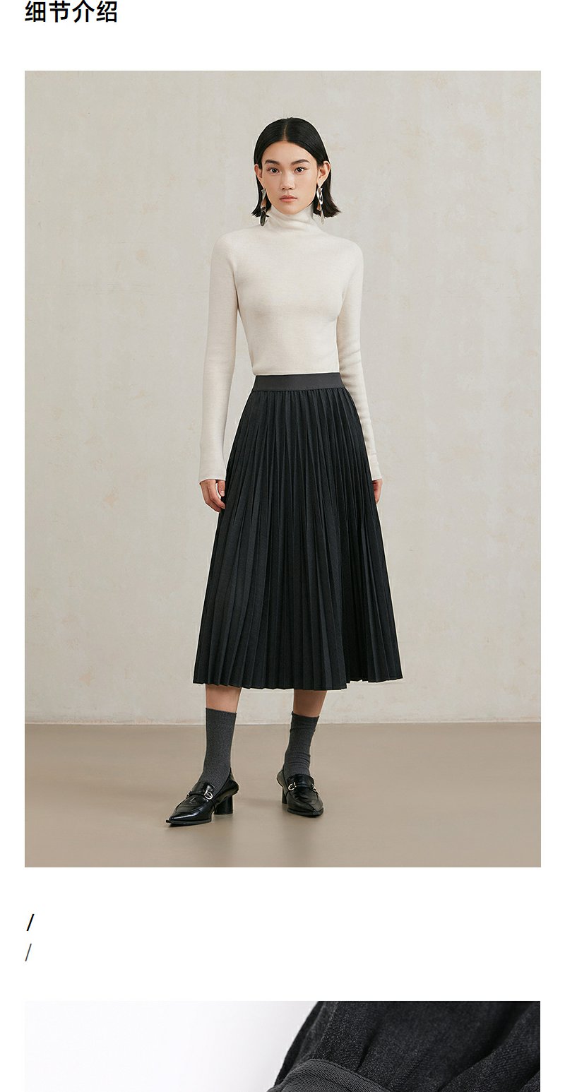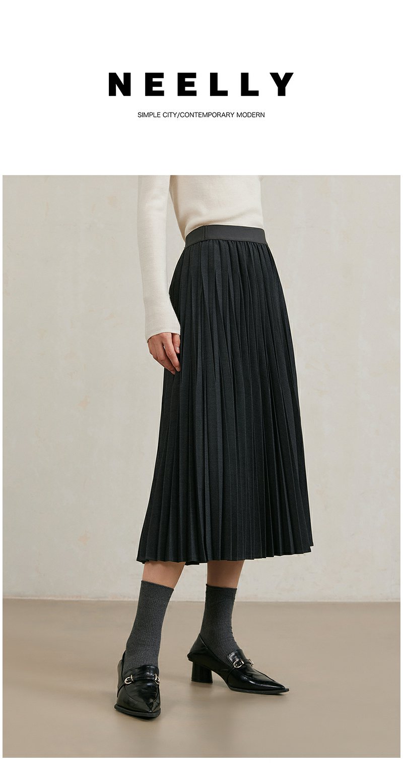 NEELLY纳俪商场同款冬季新款黑色百褶裙女A字垂感半身裙中长款N25104E04538