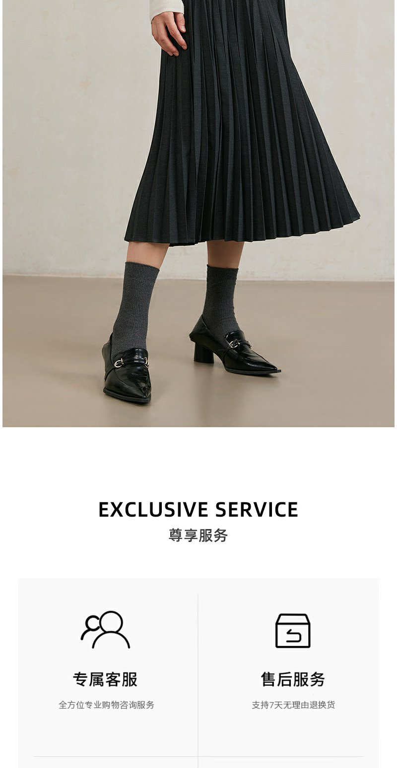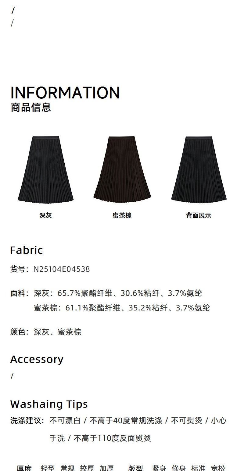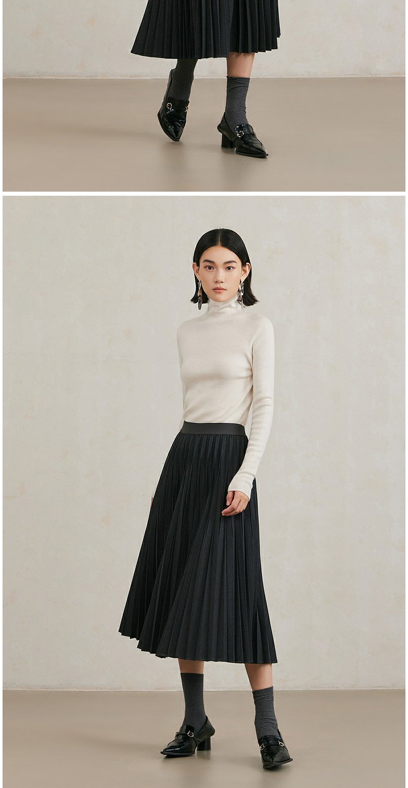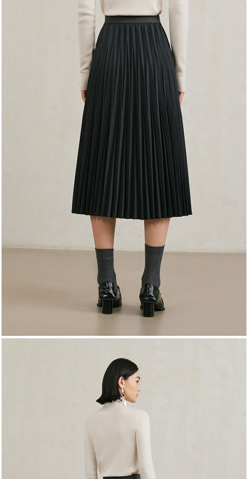 NEELLY纳俪商场同款冬季新款黑色百褶裙女A字垂感半身裙中长款N25104E04538