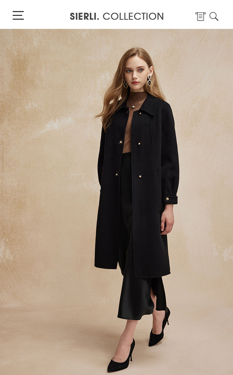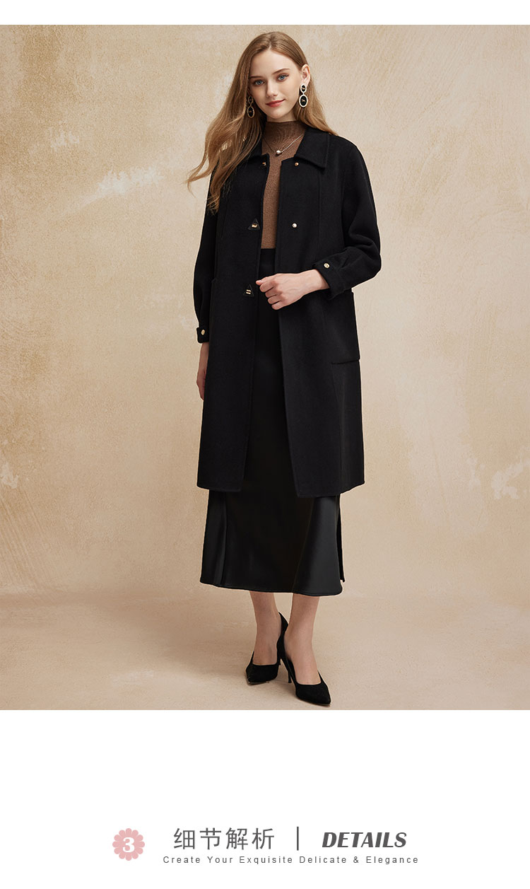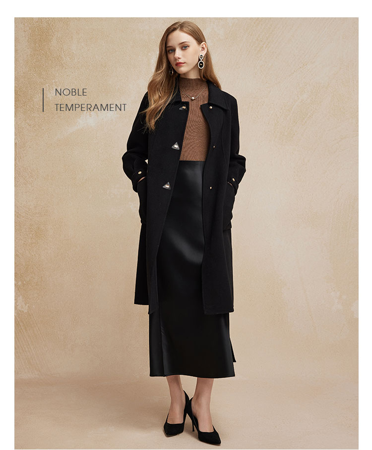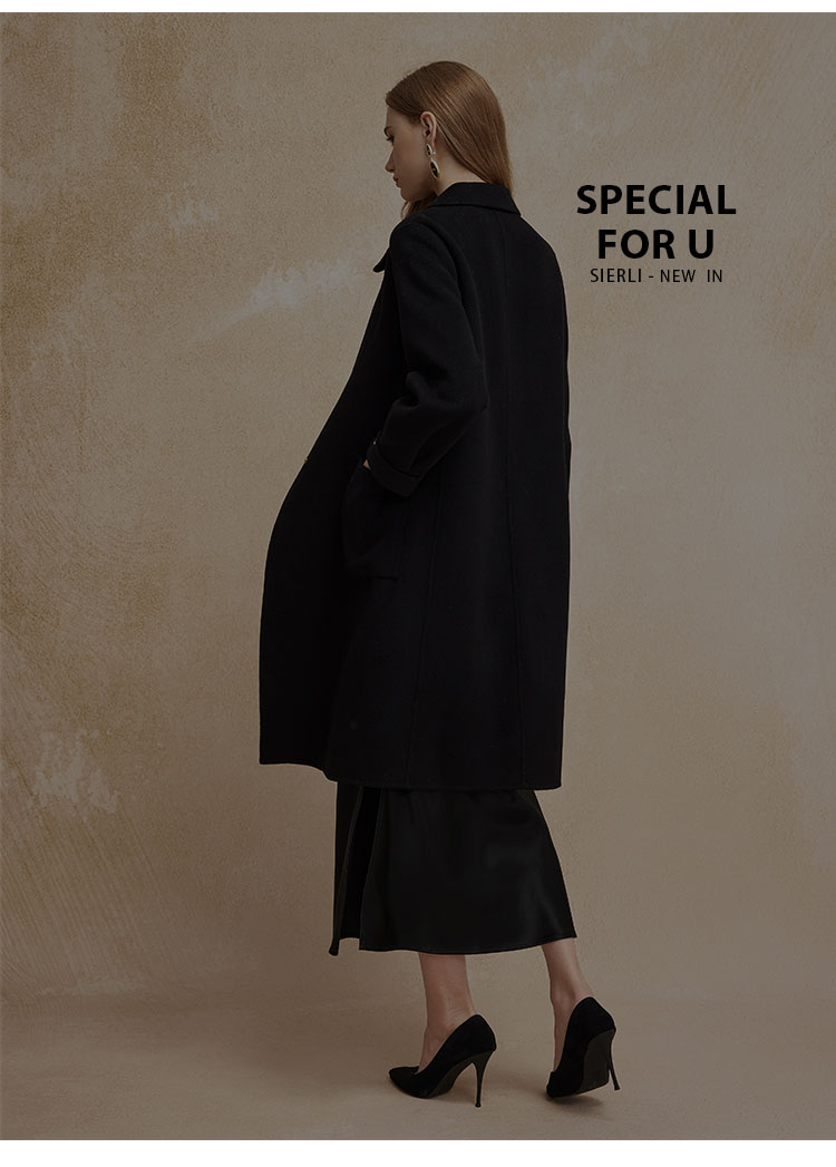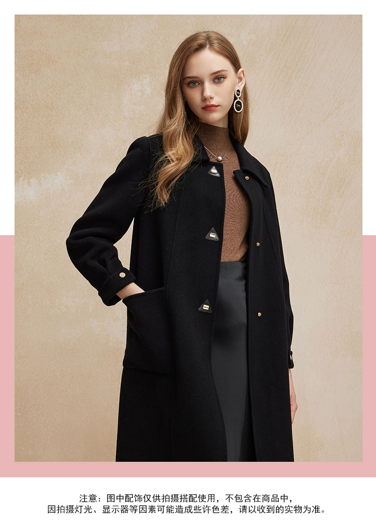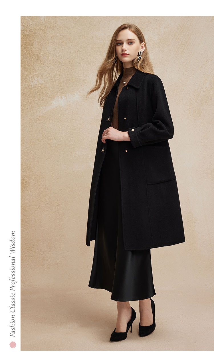PH92024新款双面呢简约大气时尚正肩方领长款羊毛大衣