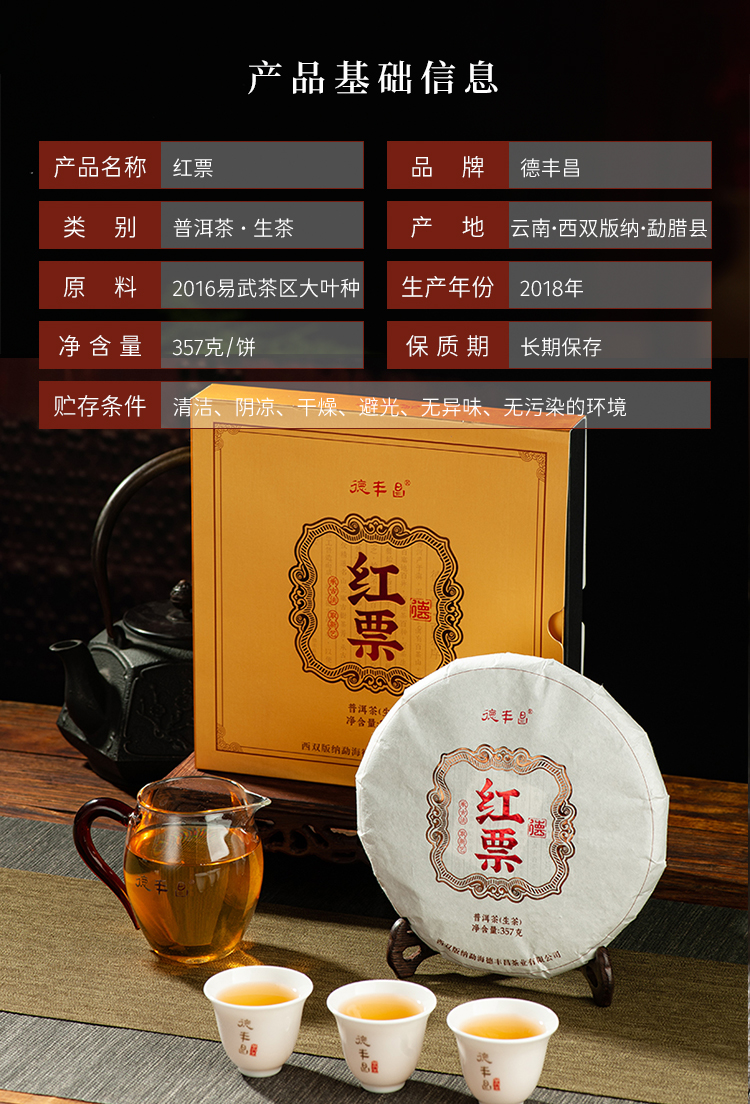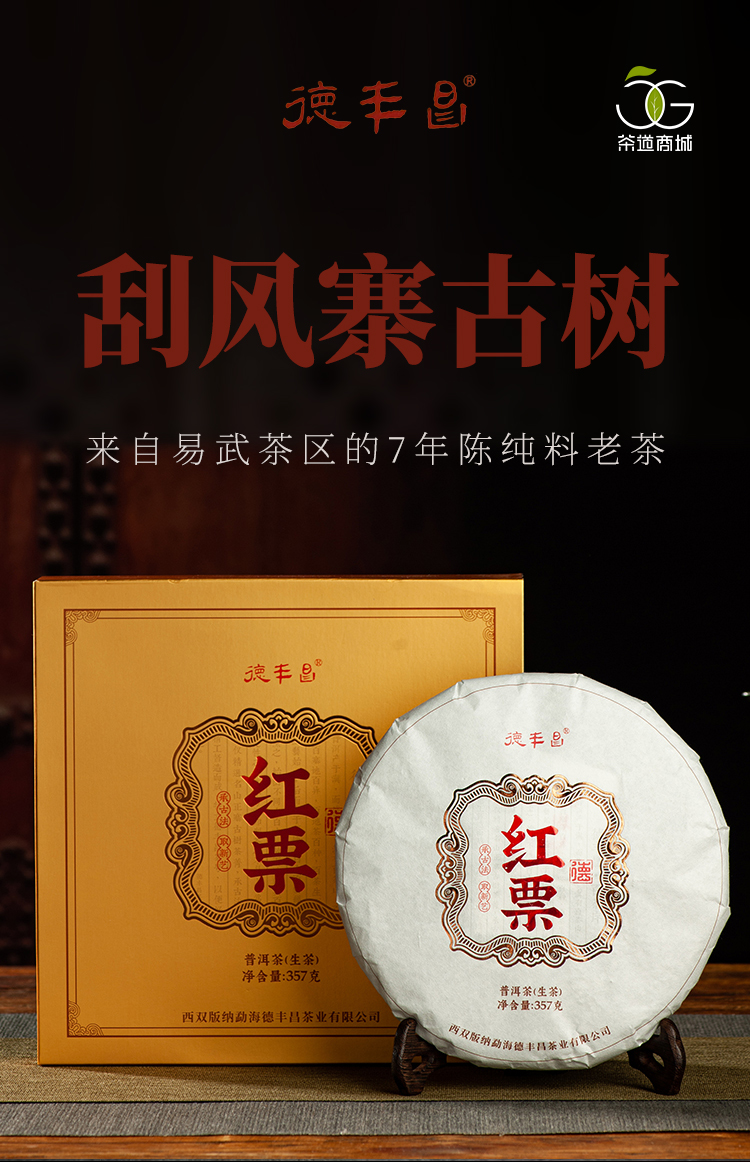 生普 | 德丰昌红票 易武刮风寨7年古树纯料普洱礼盒装357g