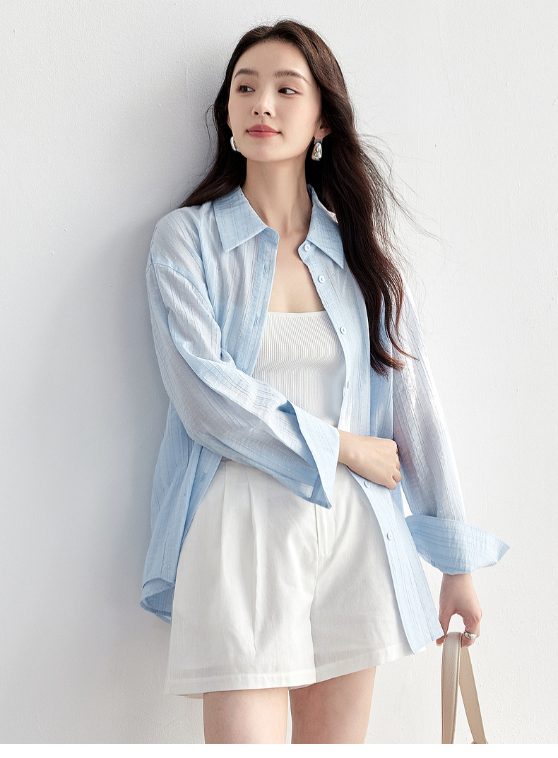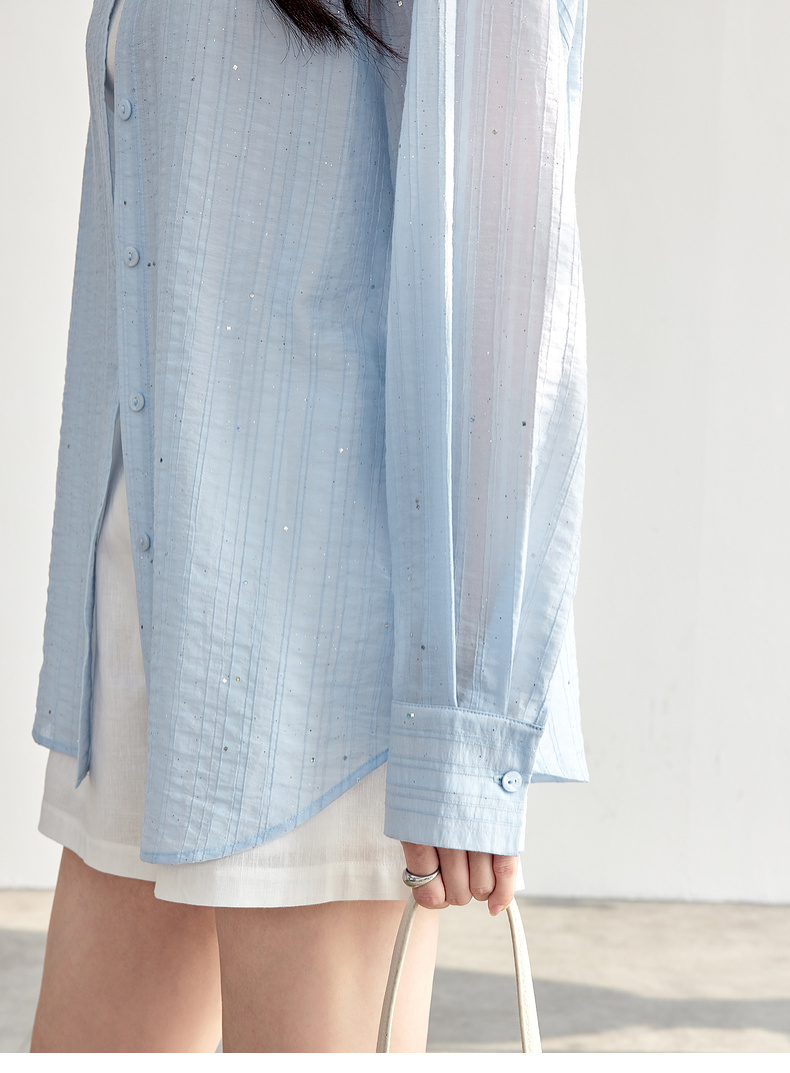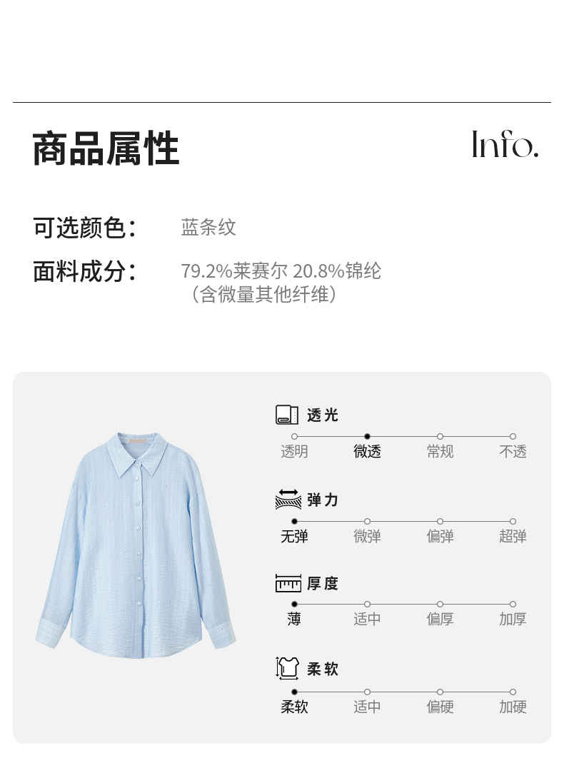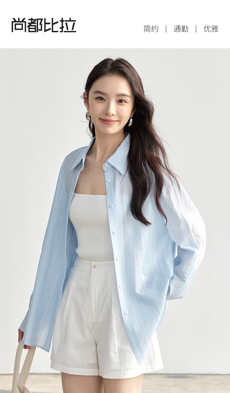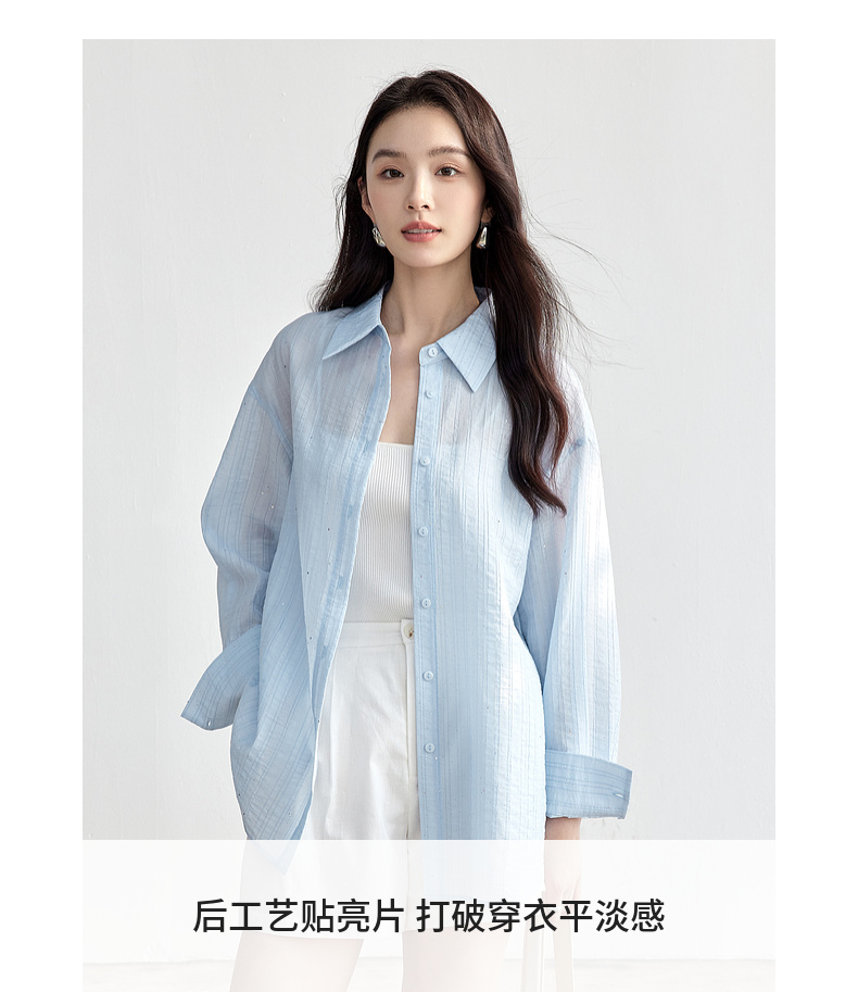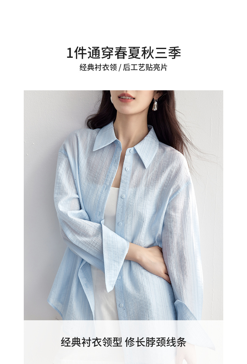 【内购】休闲通勤亮片暗条纹天丝衬衫落肩单排扣轻薄外套-57974