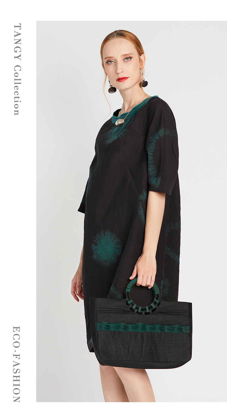 TANGY Collection天意精品莨绸香云纱扎染连衣裙