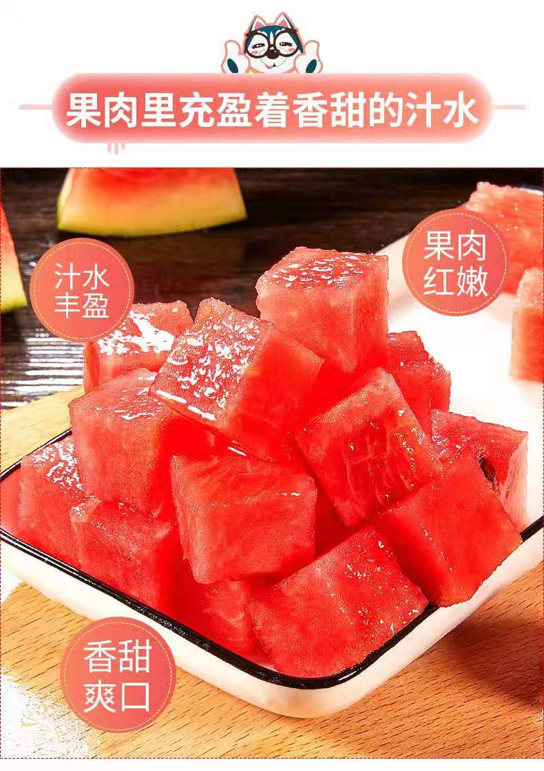 注意:【售后服务】腐烂变质正常售后 生瓜正常售后。轻微摔裂不影响食用的按实际情况酌情售后。西瓜到货后不宜长期储存,吃不完的及时放冰箱保鲜,有任何问题请在签收后24小时内联系客服,超时不予赔付。切开以后坏的立马拍照售后 ,如果打开吃不完的摆放,长时间不售后的