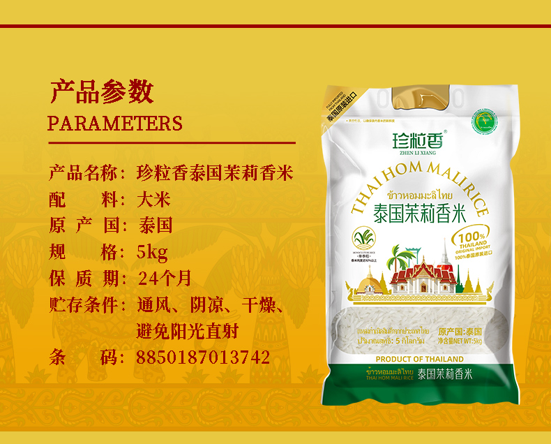 珍粒香_泰国茉莉香米白金款5kg