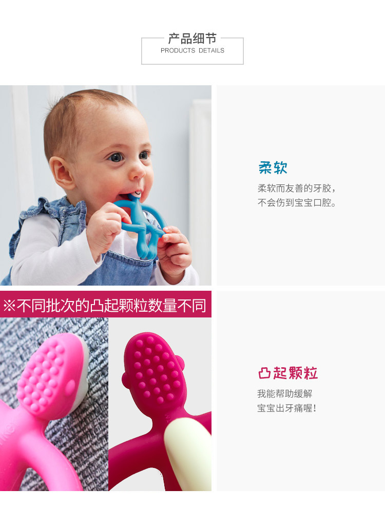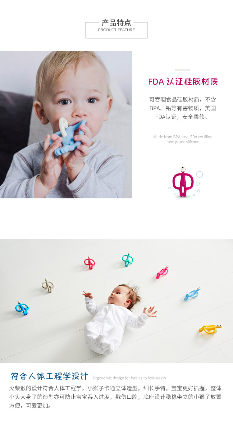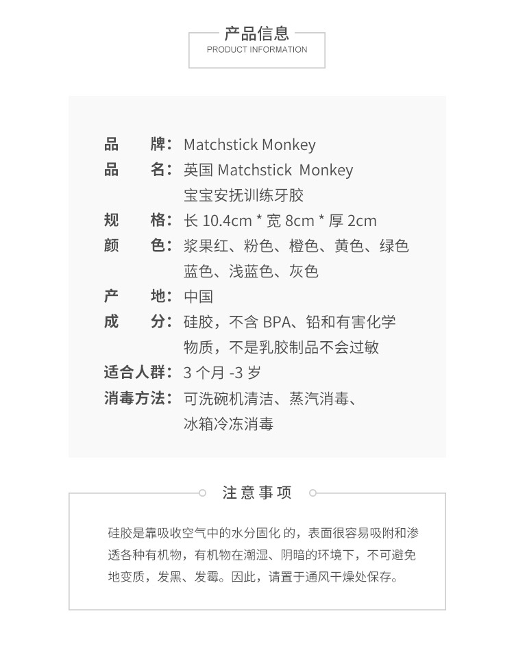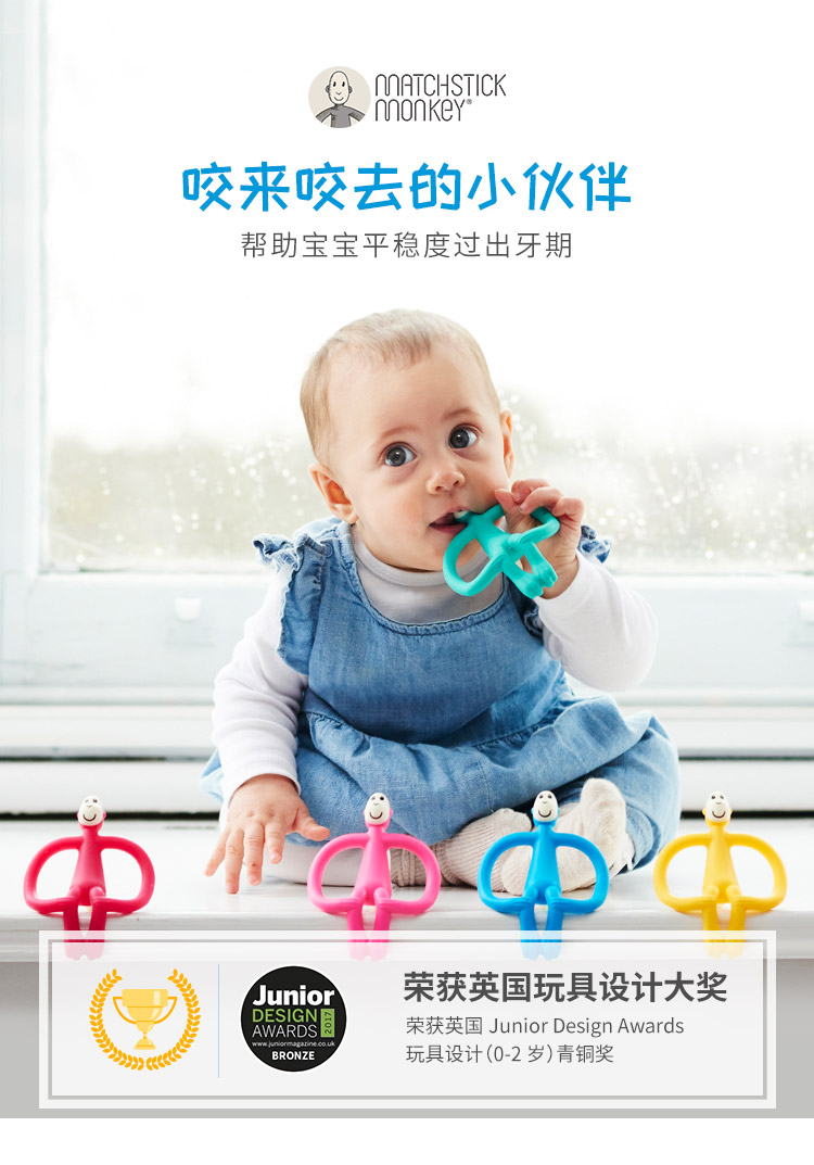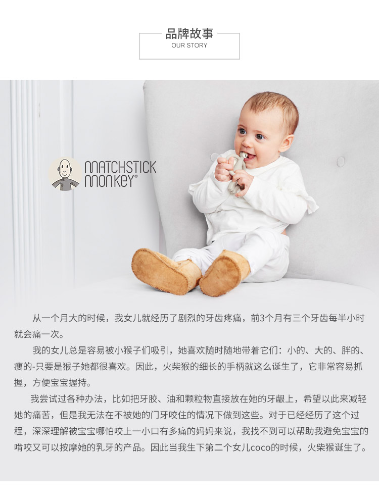 英国MatchstickMonkey火柴猴牙胶宝宝婴儿咬咬安抚磨牙棒软硅胶